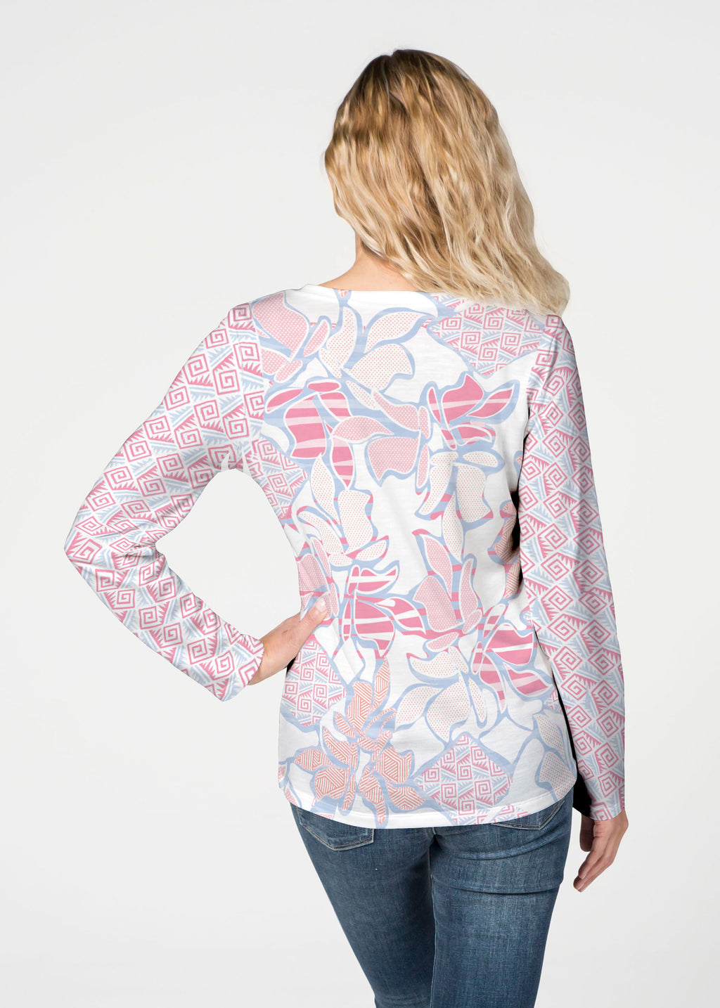 Our French Terry top is comfort and style all in one! Our French Terry top that features long sleeves, a V-neck and a more fitted silhouette that looks stylish in any print.