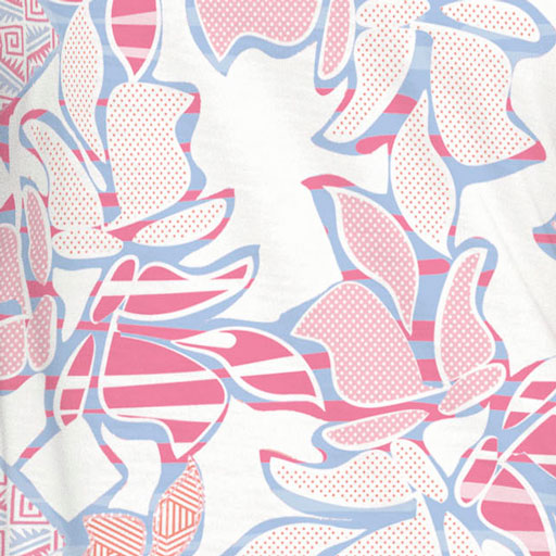 A geo design of hot pink, periwinkle & white imitating "sails" of a boat with coordinating aztek printed sleeves.