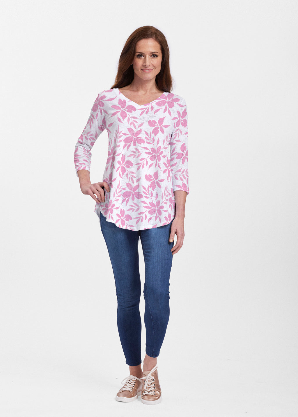 Botanical Pink (8025) ~ V-neck Flowy Tunic