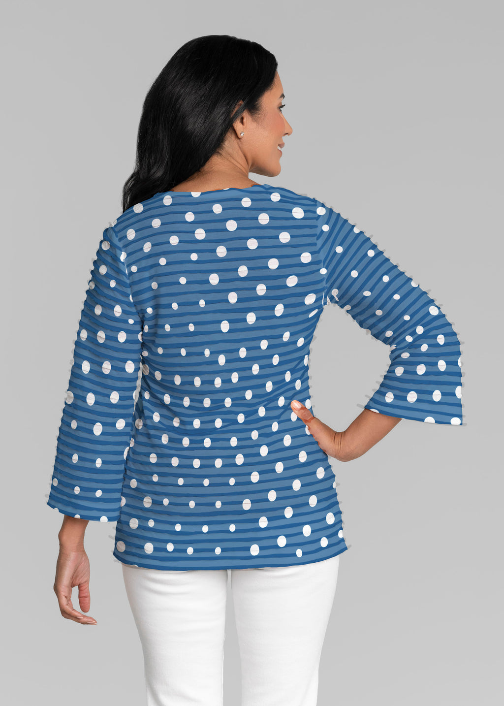 Carlotta Blue (8196) ~ Banded 3/4 Bell-Sleeve V-Neck Tunic