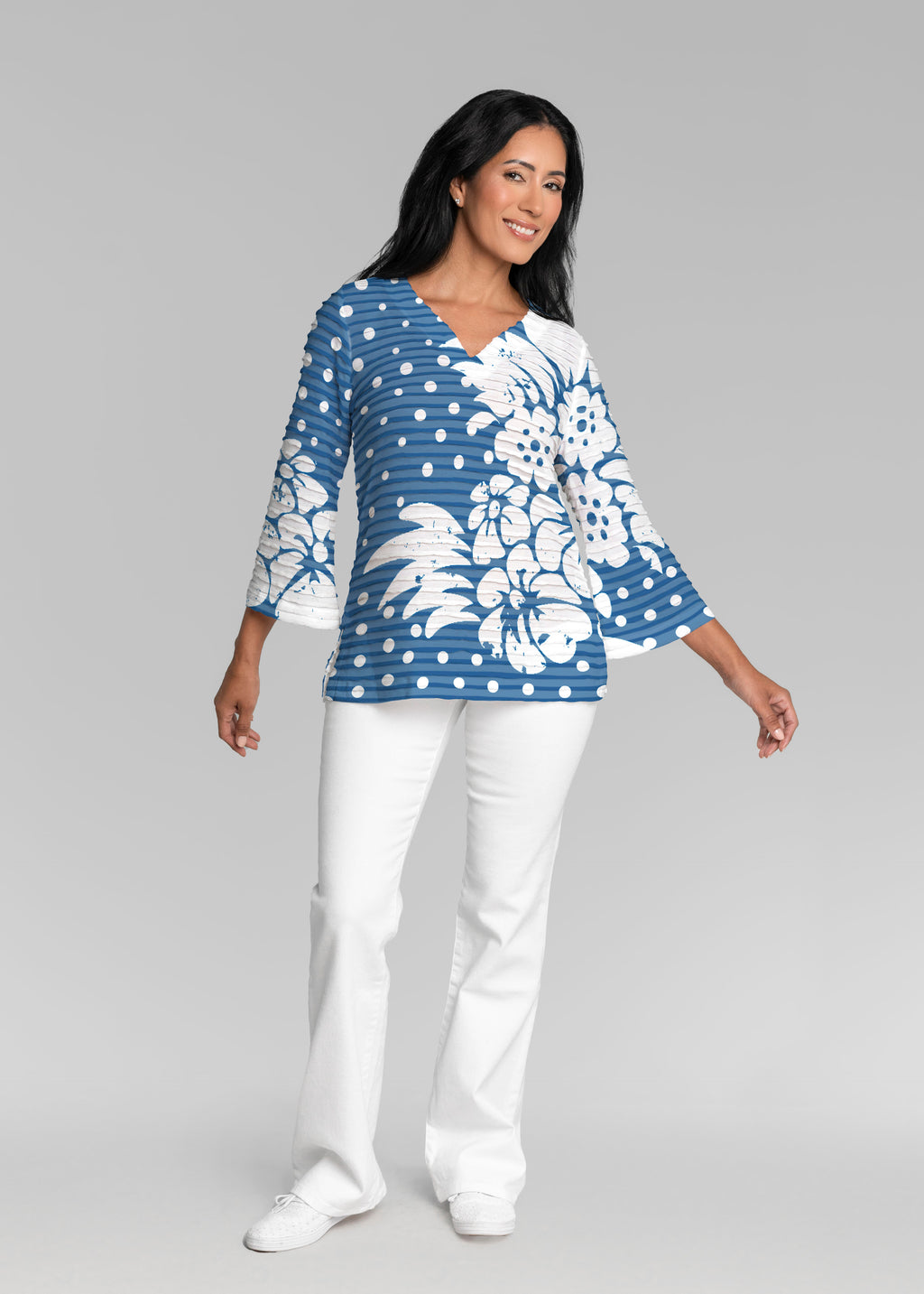 Surfin Safari (26034) ~ Banded 3/4 Bell-Sleeve V-Neck Tunic