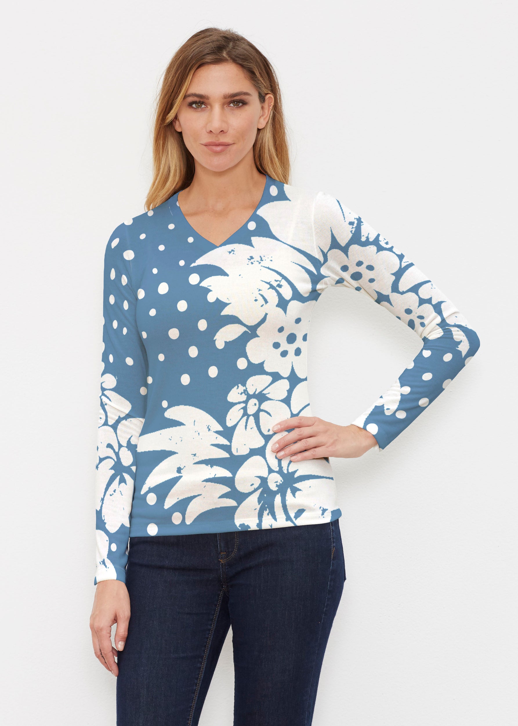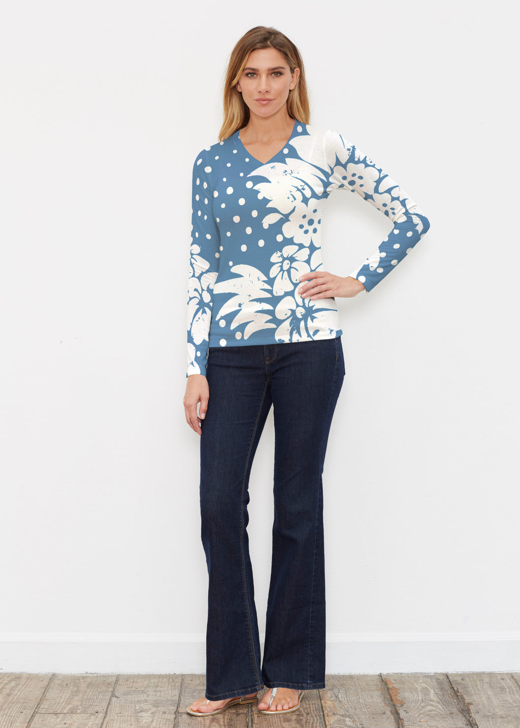 Jungle Warrior Blue (7850) ~ Butterknit Long Sleeve V-Neck Top