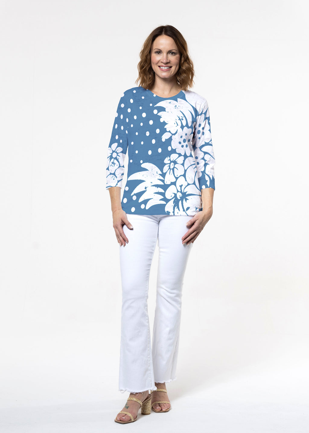 Carlotta Blue (8196) ~ Signature 3/4 Sleeve Crew Neck Top