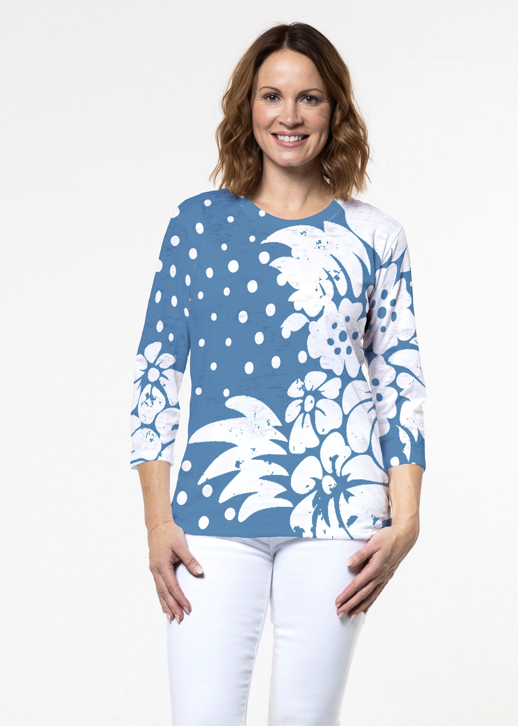 • Carlotta Blue (8196) ~ Signature 3/4 Sleeve Crew Neck Top