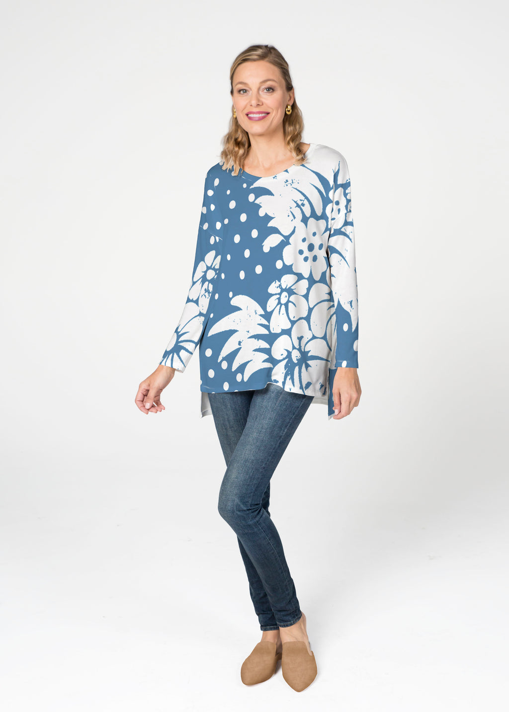 Carlotta Blue (8196) ~ V-neck Flowy Tunic