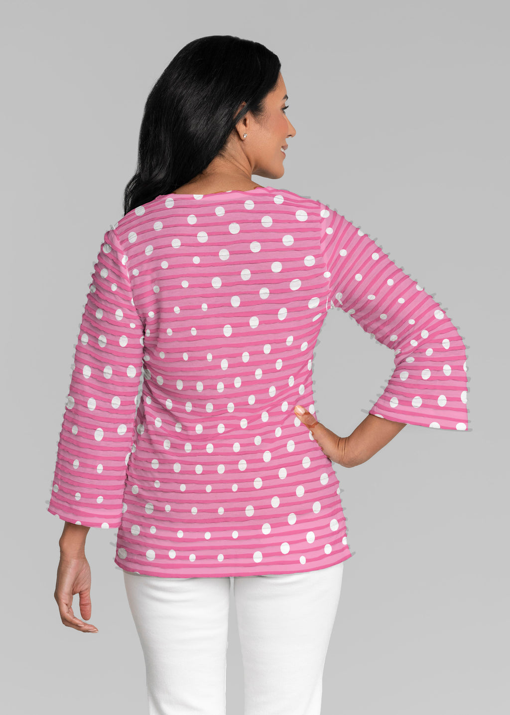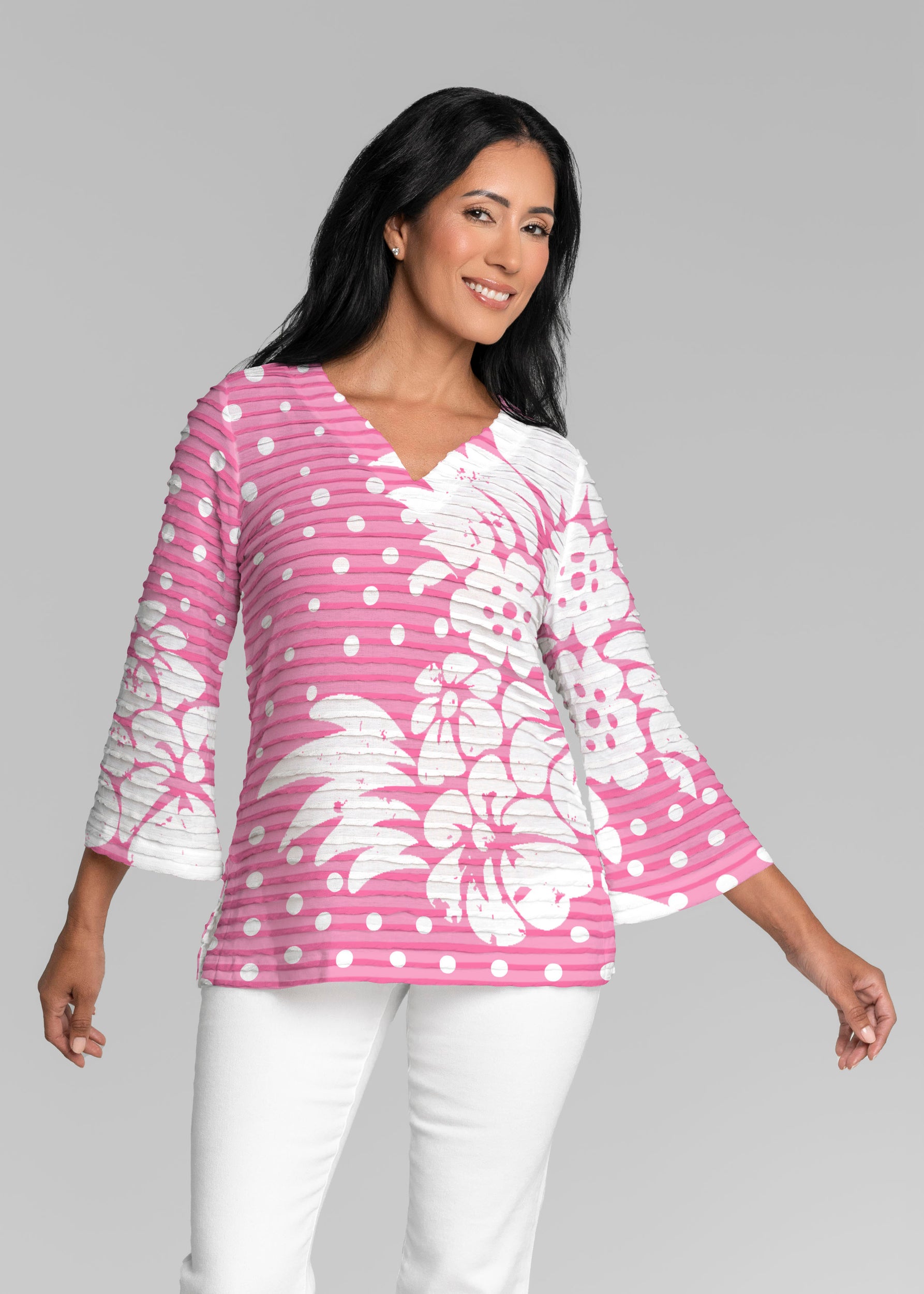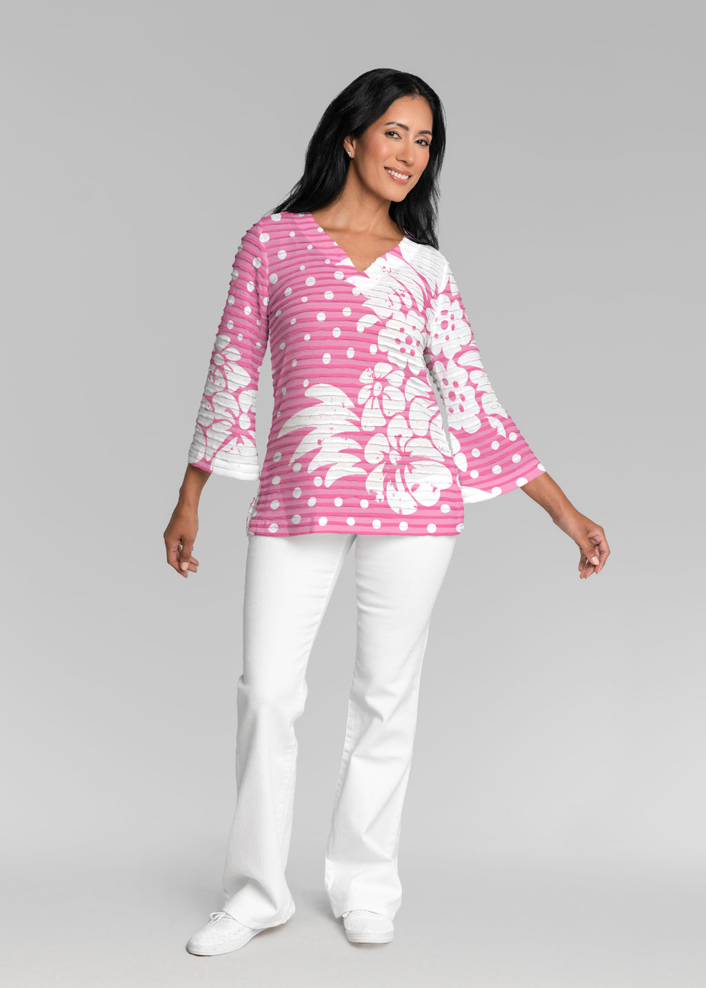 Carlotta Pink (8194) ~ Banded 3/4 Bell-Sleeve V-Neck Tunic