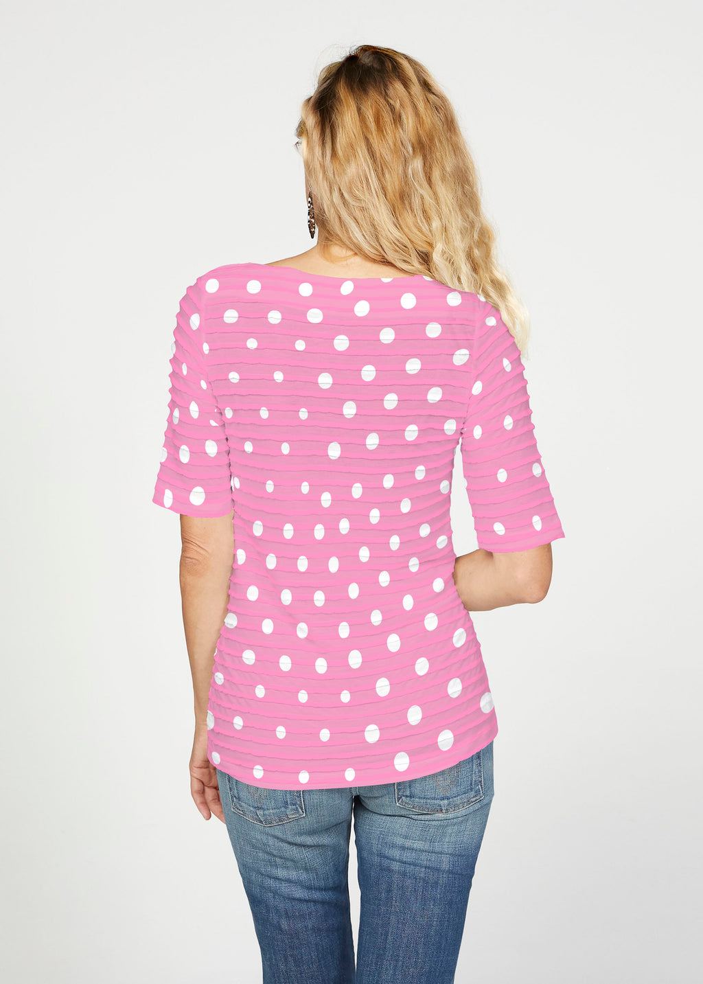 Splashy Dots Black (7921) ~ Banded Elbow Sleeve Boat Neck Top