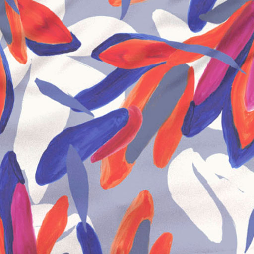 A stunning hand painted brushed floral print in blue, pink, red and white designed by Susan Werner.