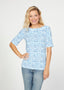 Flora Blue (7373) ~ Banded Elbow Sleeve Boat Neck Top