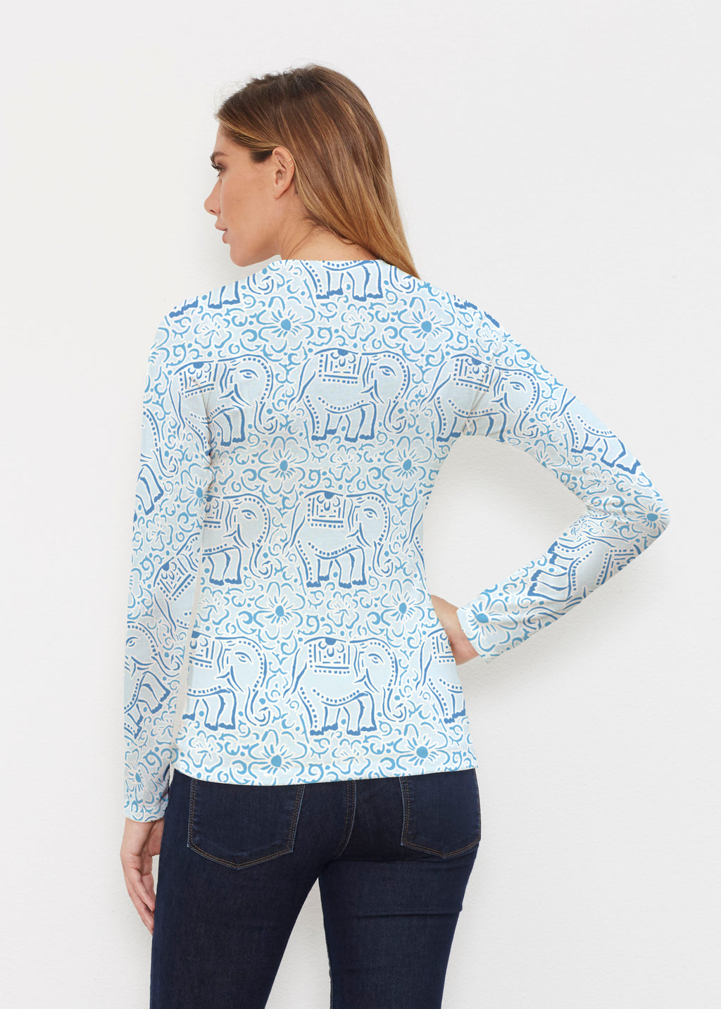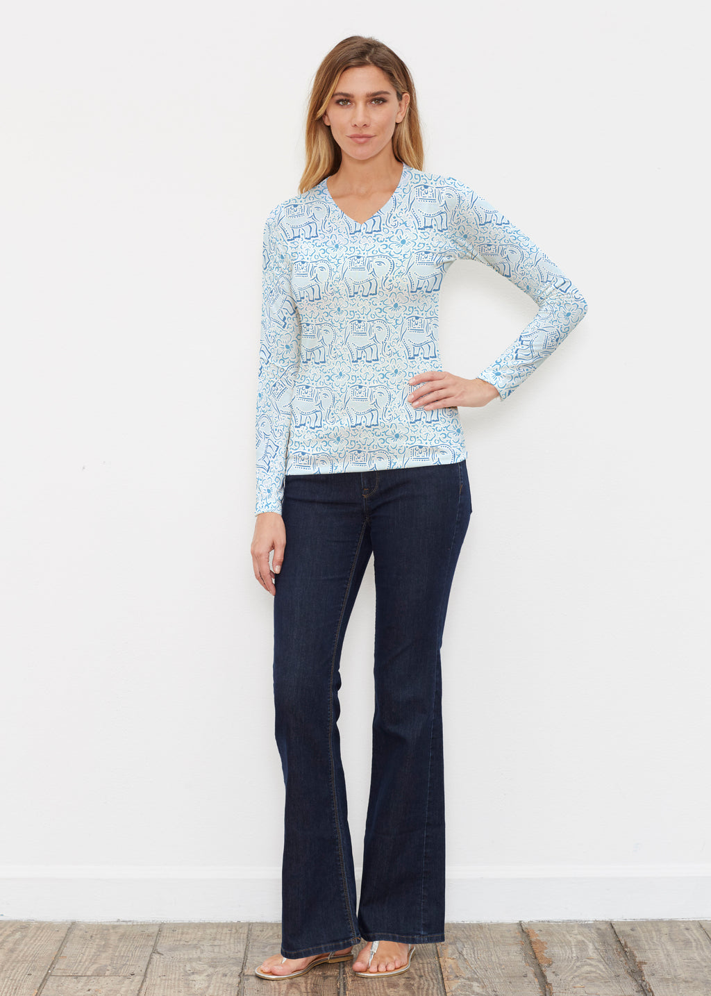 Jungle Warrior Blue (7850) ~ Butterknit Long Sleeve V-Neck Top