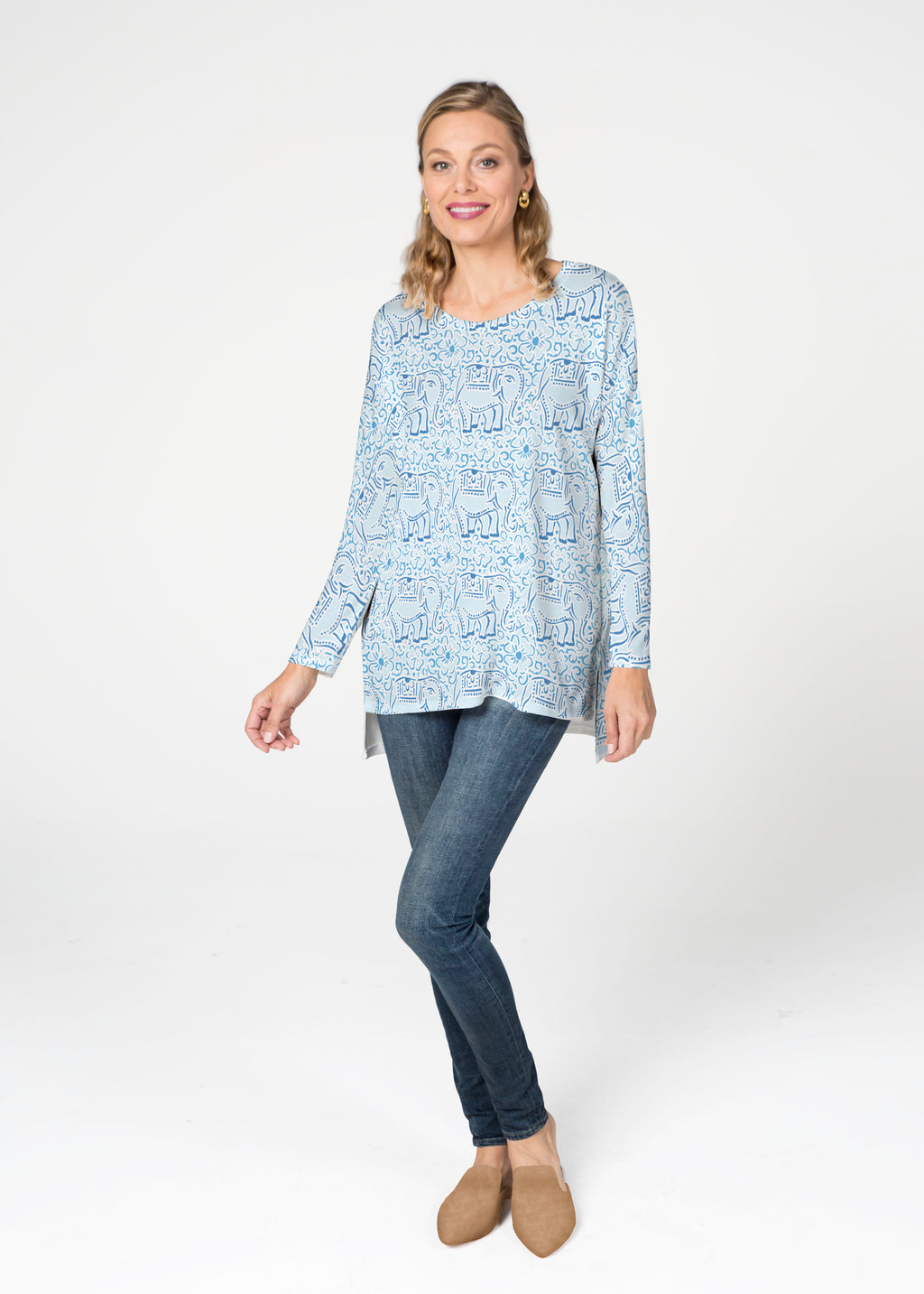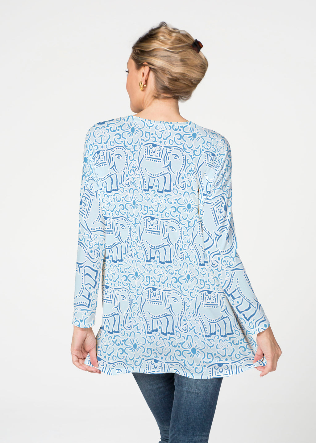 Flora Blue (7373) ~ V-neck Flowy Tunic