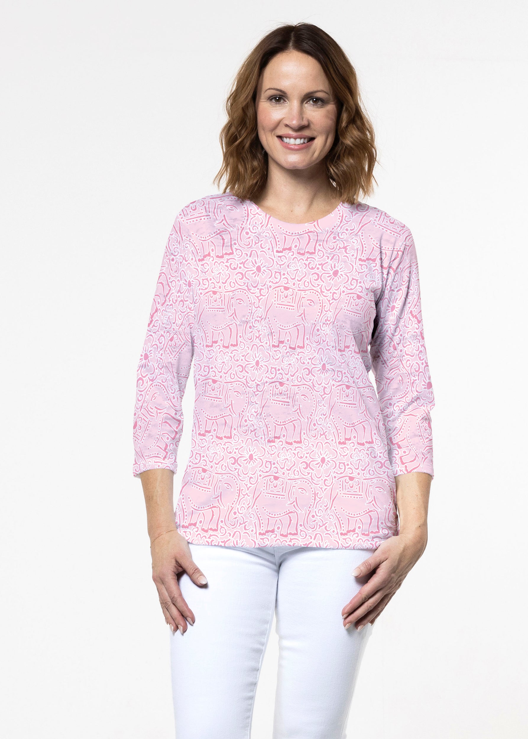 Flora Blush (8204) ~ Signature 3/4 Sleeve Crew Neck Top