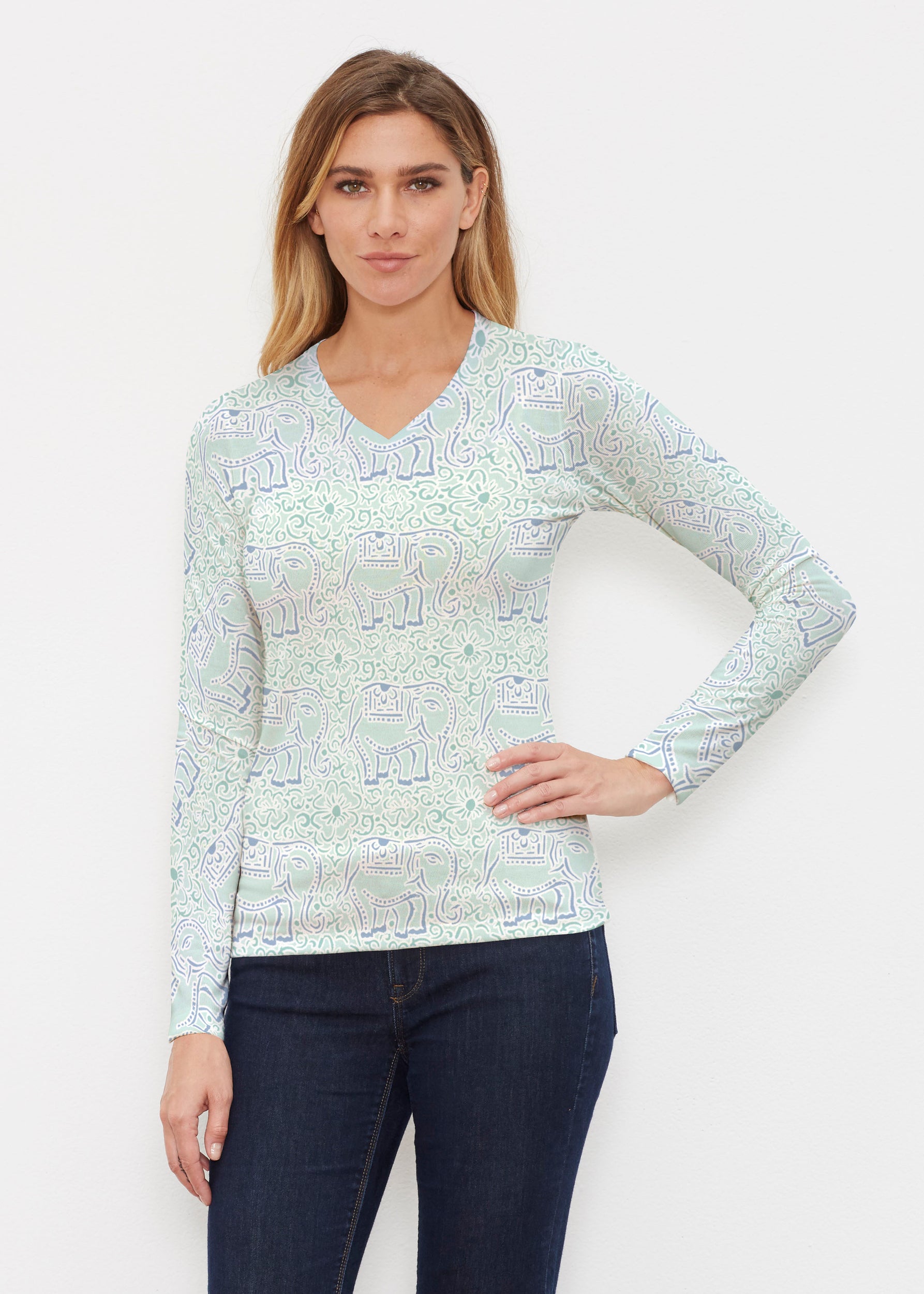 Polished and elegant, this top is a sophisticated option for chillier temps. Our soft and cozy Butterknit fabric, long sleeves, fitted shape, and v- neck make the perfect comfortable and stylish look in your favorite print.