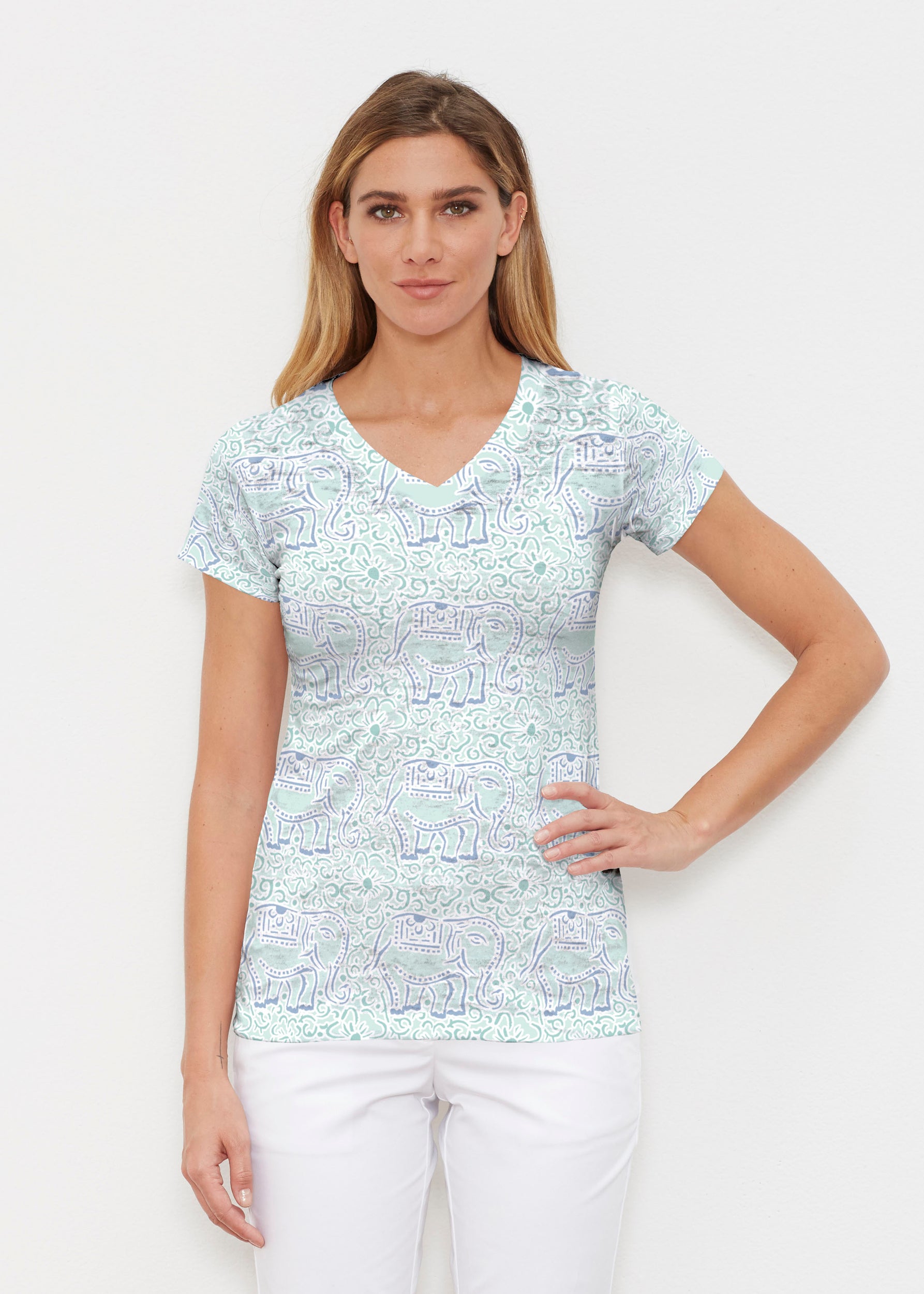 Flora Mint (8203) ~ Signature Cap Sleeve V-Neck Shirt