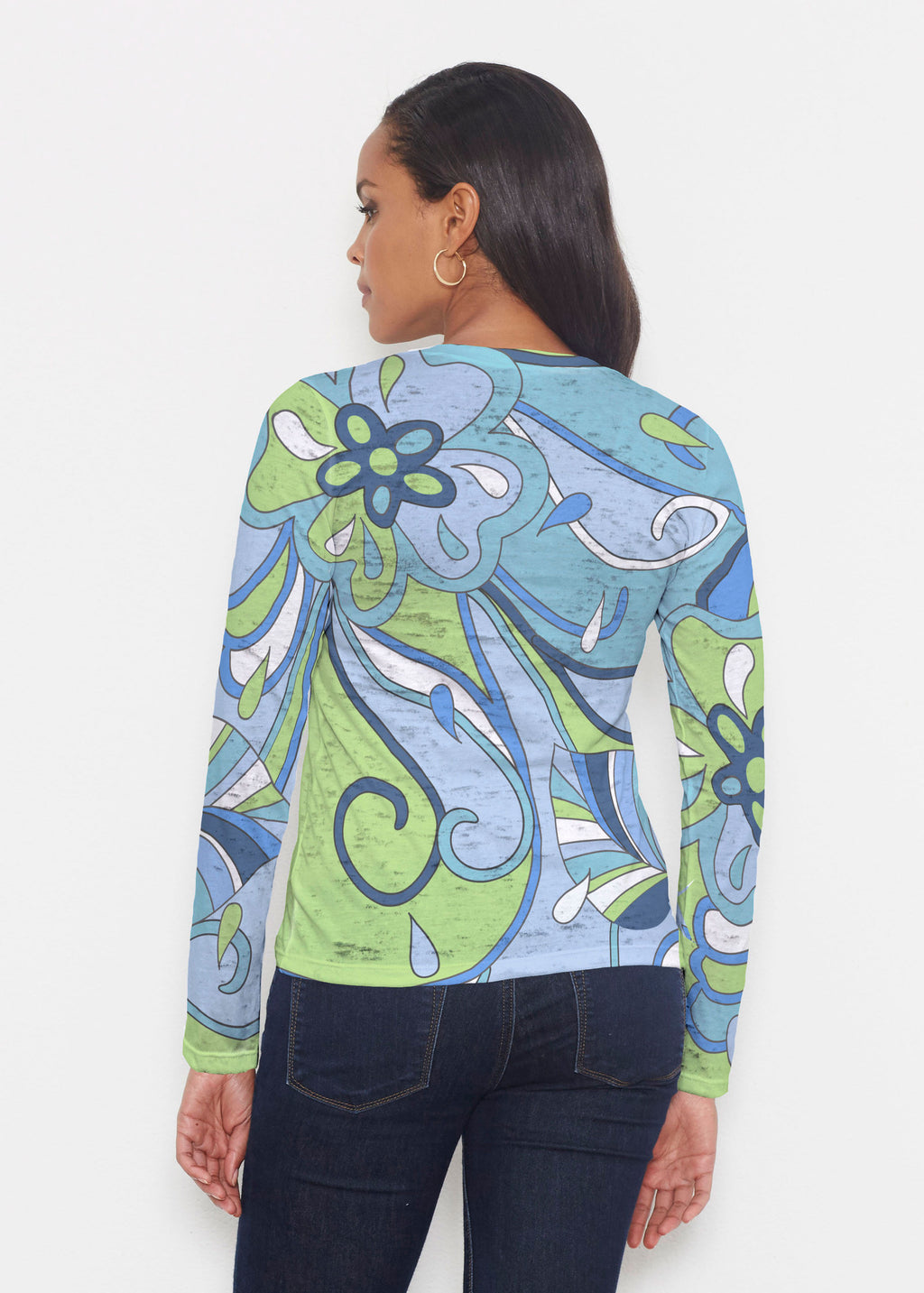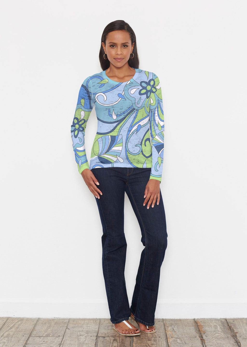Floral Spritz Turquoise (22093) ~ Signature Long Sleeve Crew Shirt