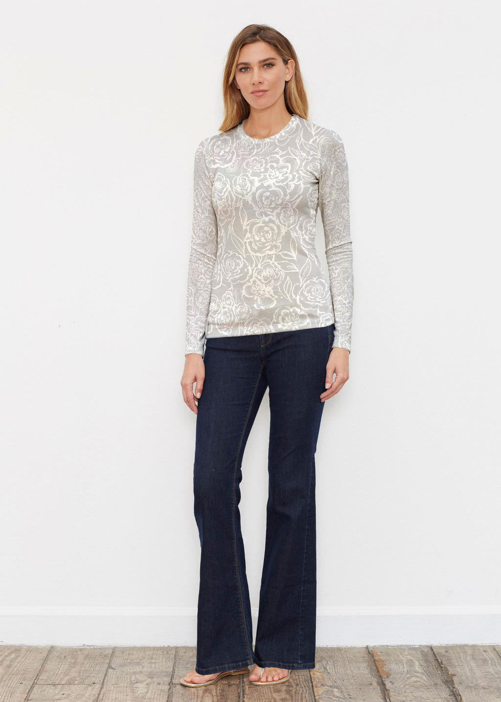 Freehand Floral Grey (7605) ~ Butterknit Long Sleeve Crew Top