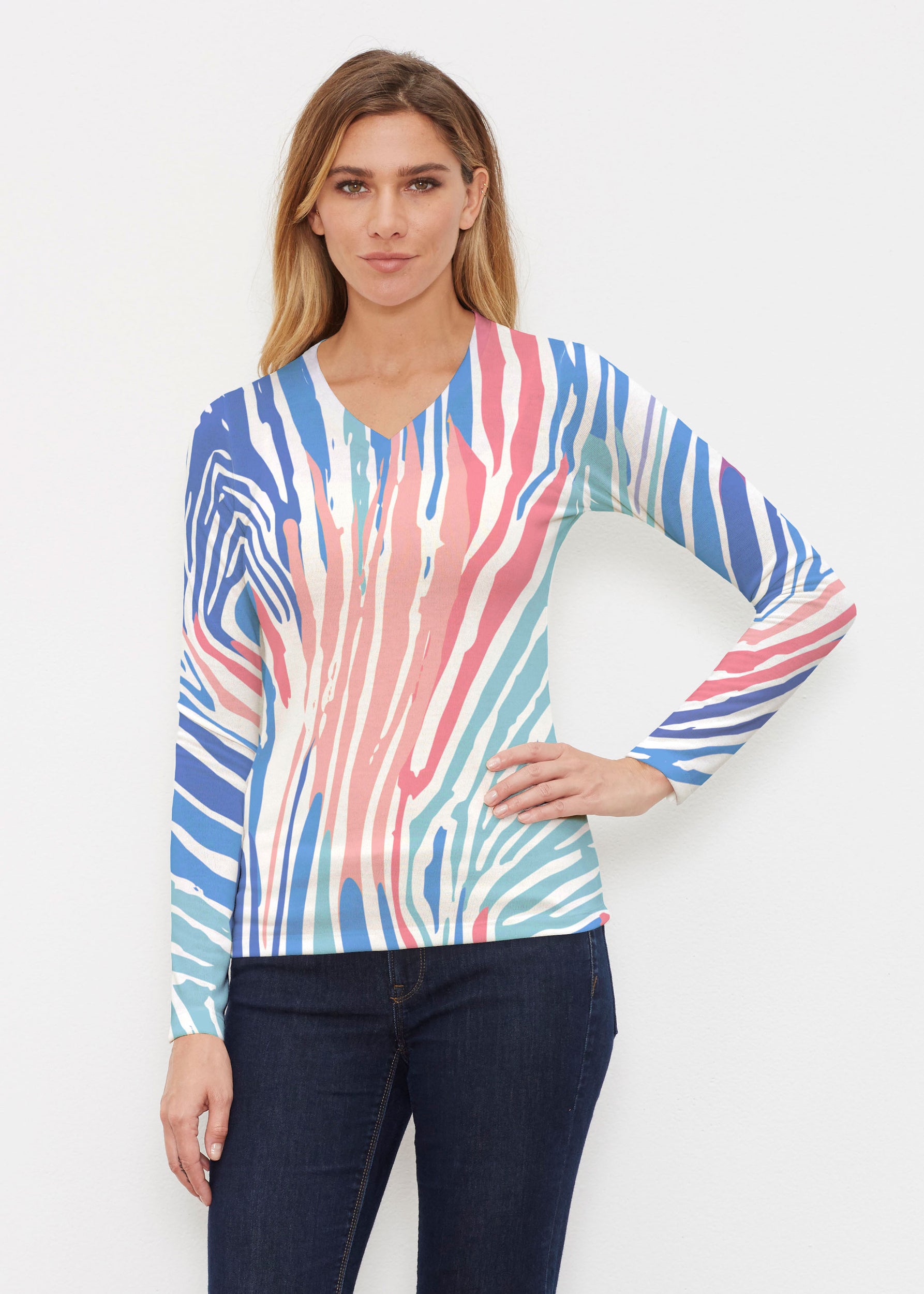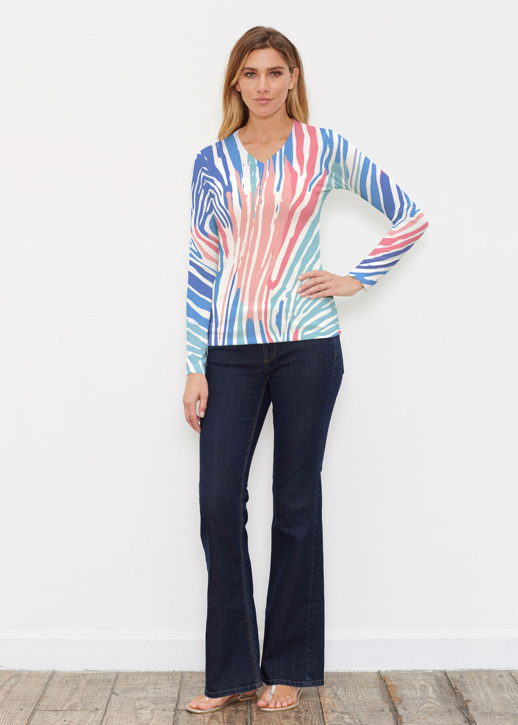 Polished and elegant, this top is a sophisticated option for chillier temps. Our soft and cozy Butterknit fabric, long sleeves, fitted shape, and v- neck make the perfect comfortable and stylish look in your favorite print.