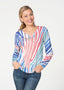 A rainbow of playful stripes in summery colors of corals, purples, aquas & blues.