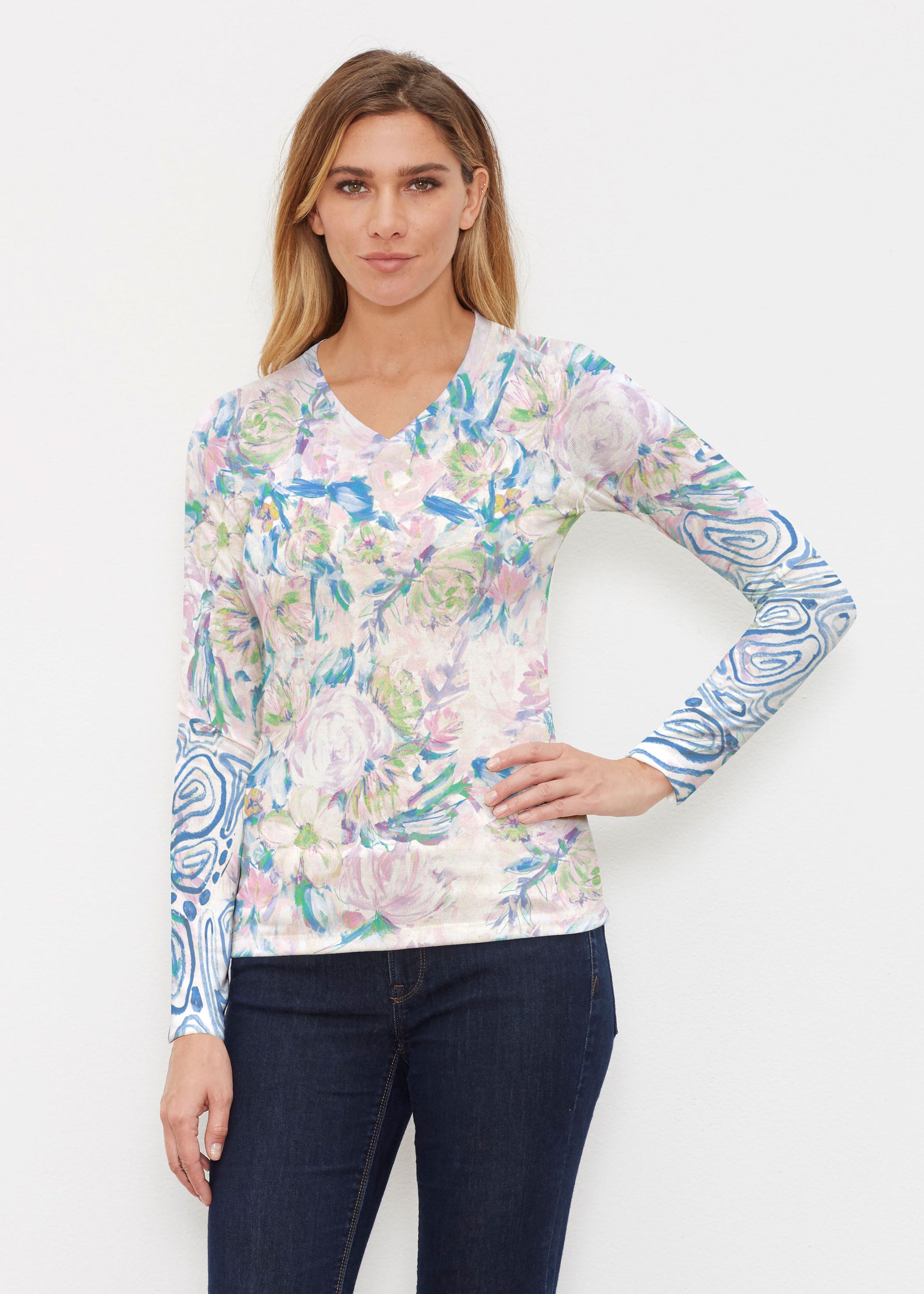 Polished and elegant, this top is a sophisticated option for chillier temps. Our soft and cozy Butterknit fabric, long sleeves, fitted shape, and v- neck make the perfect comfortable and stylish look in your favorite print.
