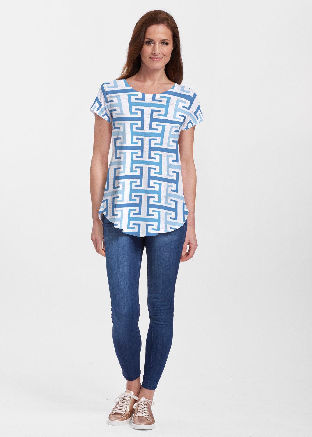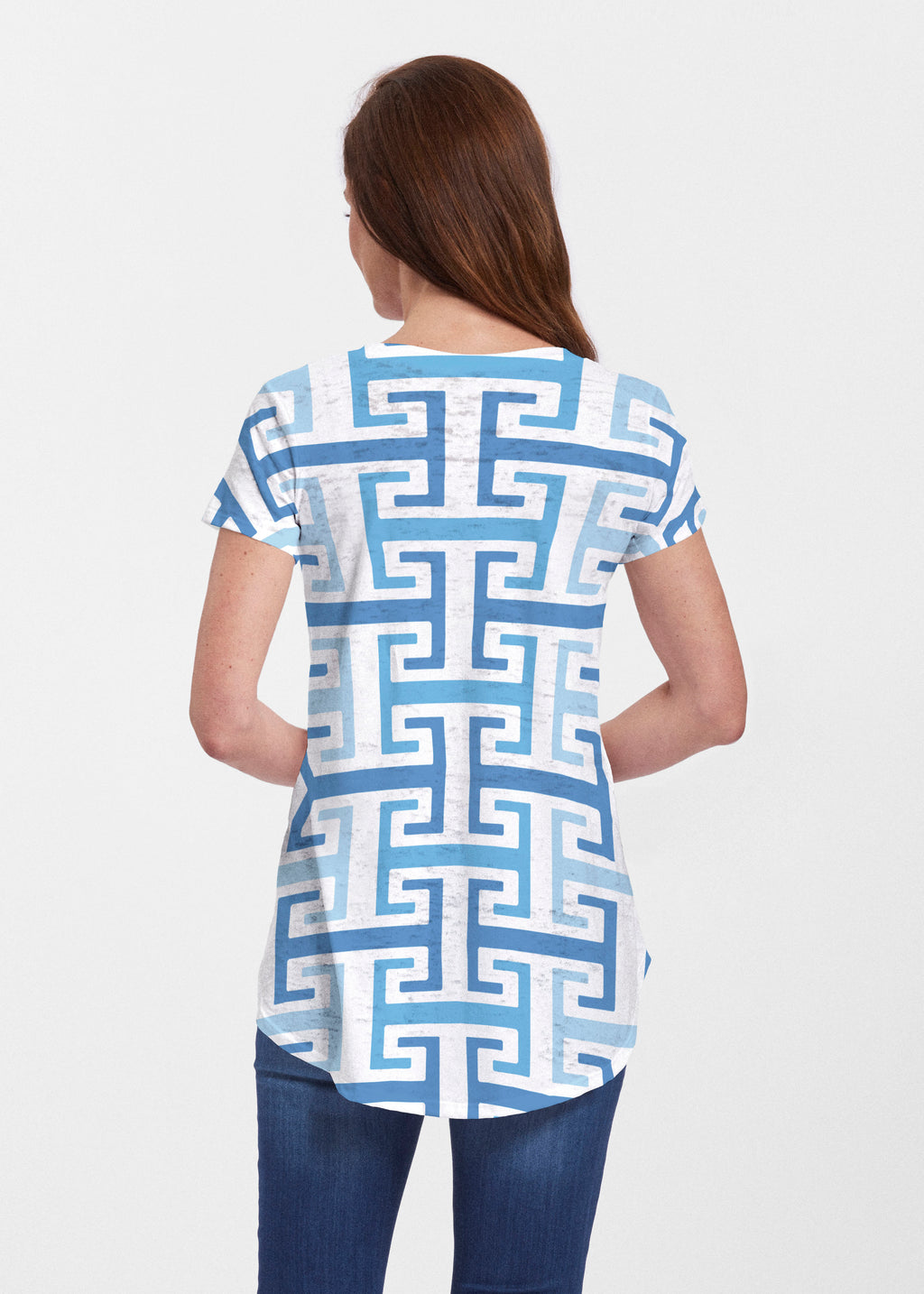 Greek Key Blue (8192) ~ Short Sleeve Scoop Neck Flowy Tunic