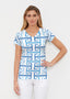 Greek Key Blue (8192) ~ Banded Elbow Sleeve Boat Neck Top