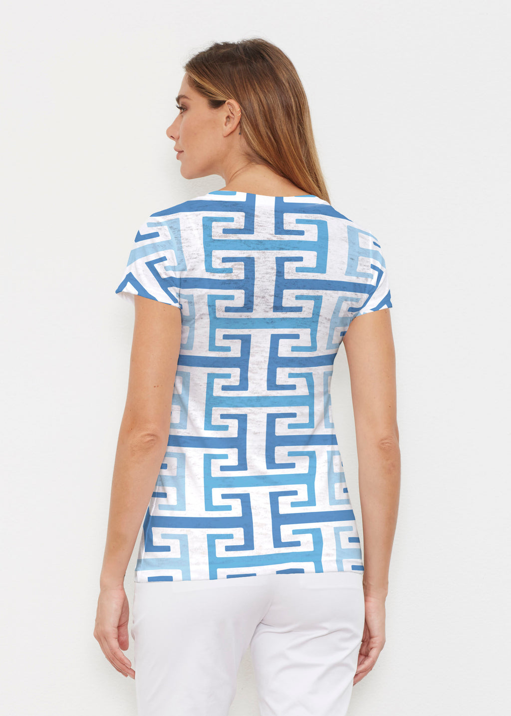 Greek Key Blue (8192) ~ Signature Cap Sleeve V-Neck Shirt