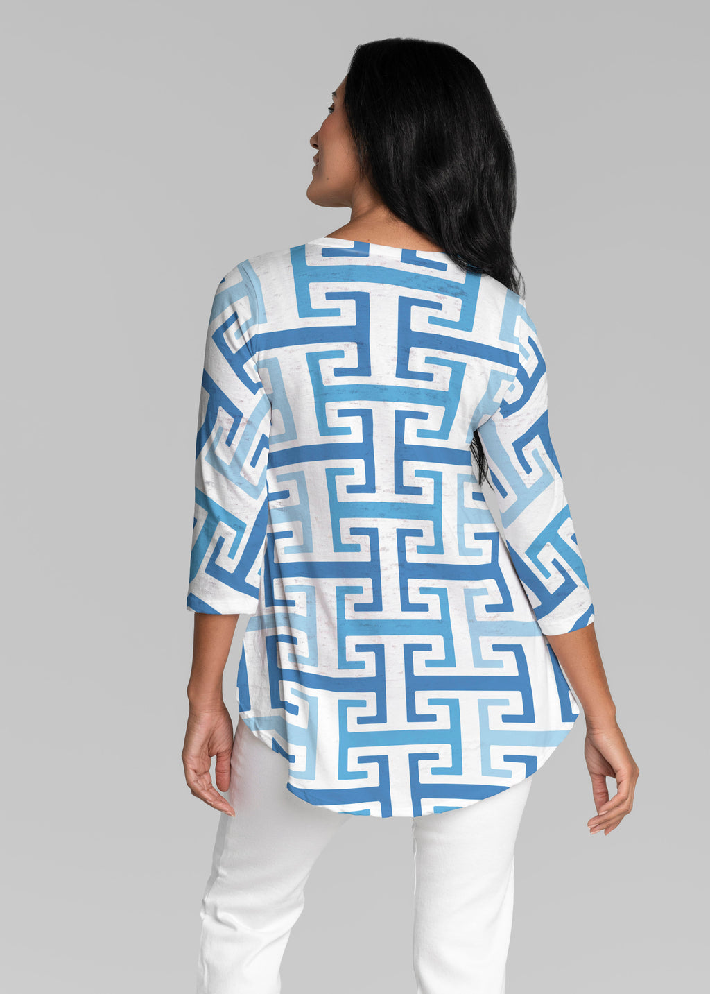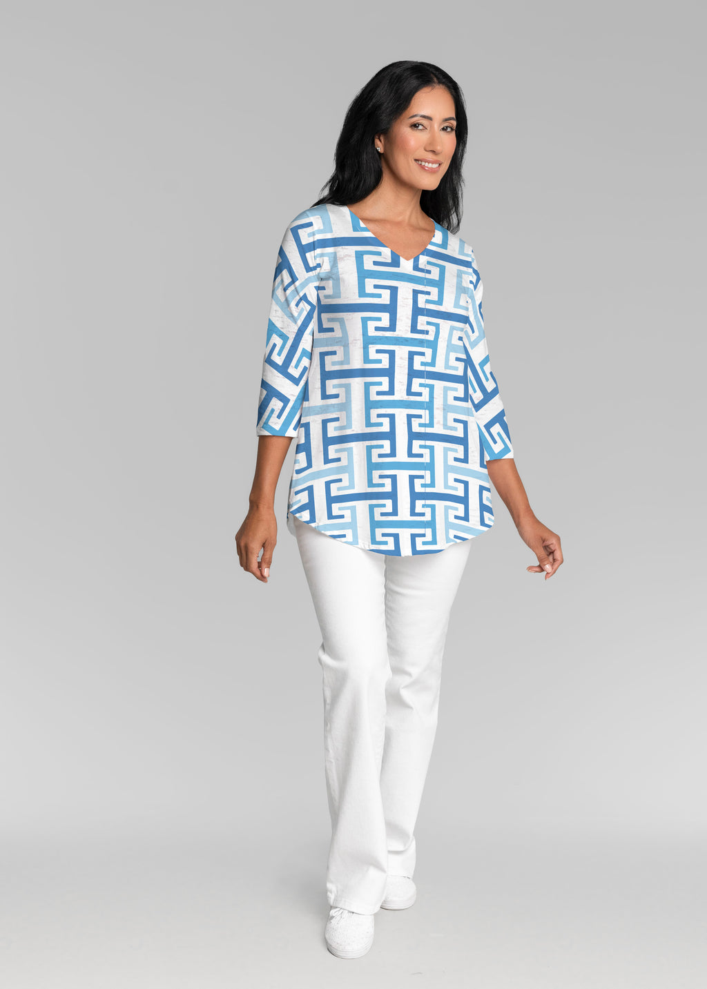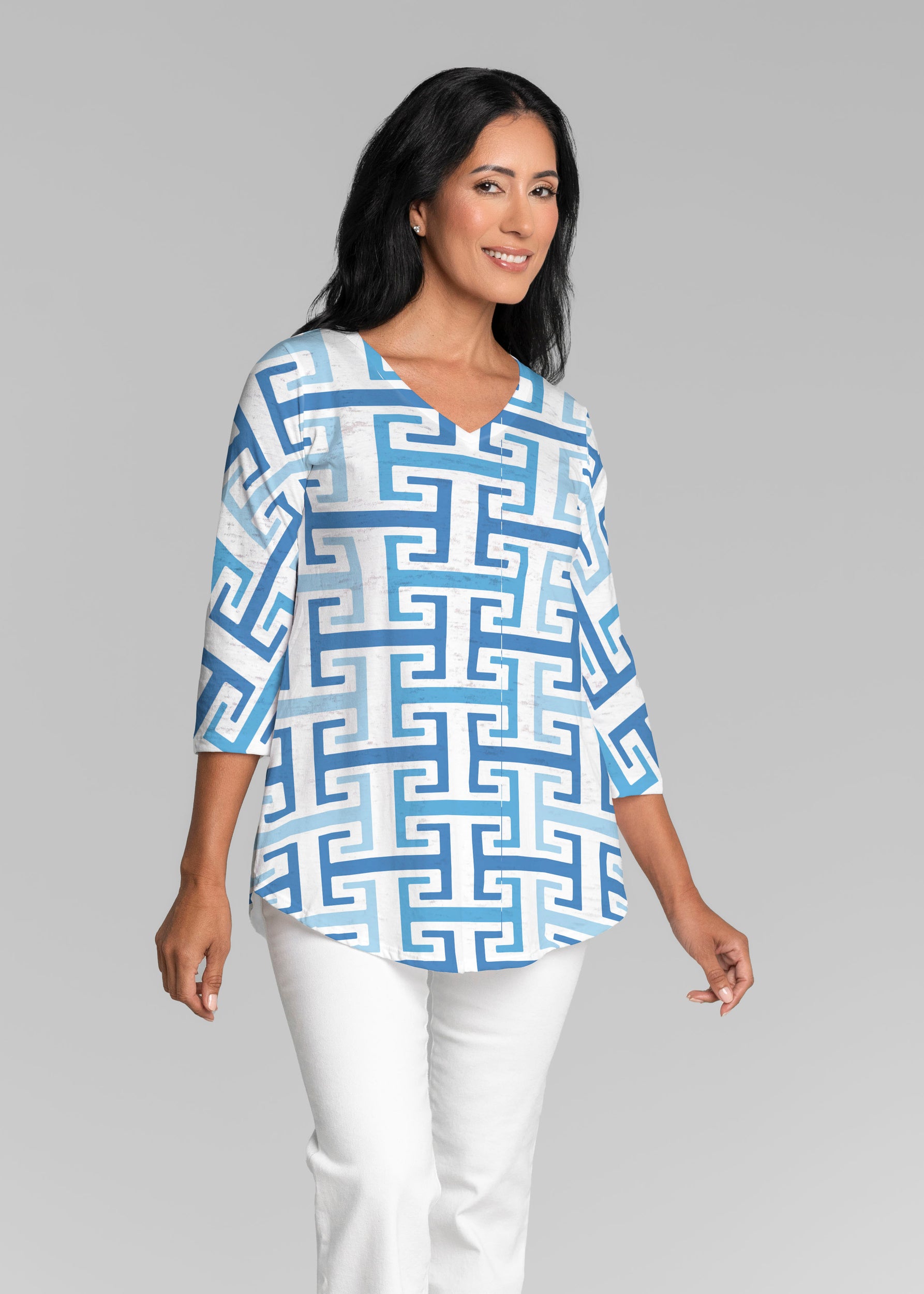 • Greek Key Blue (8192) ~ V-neck Flowy Tunic