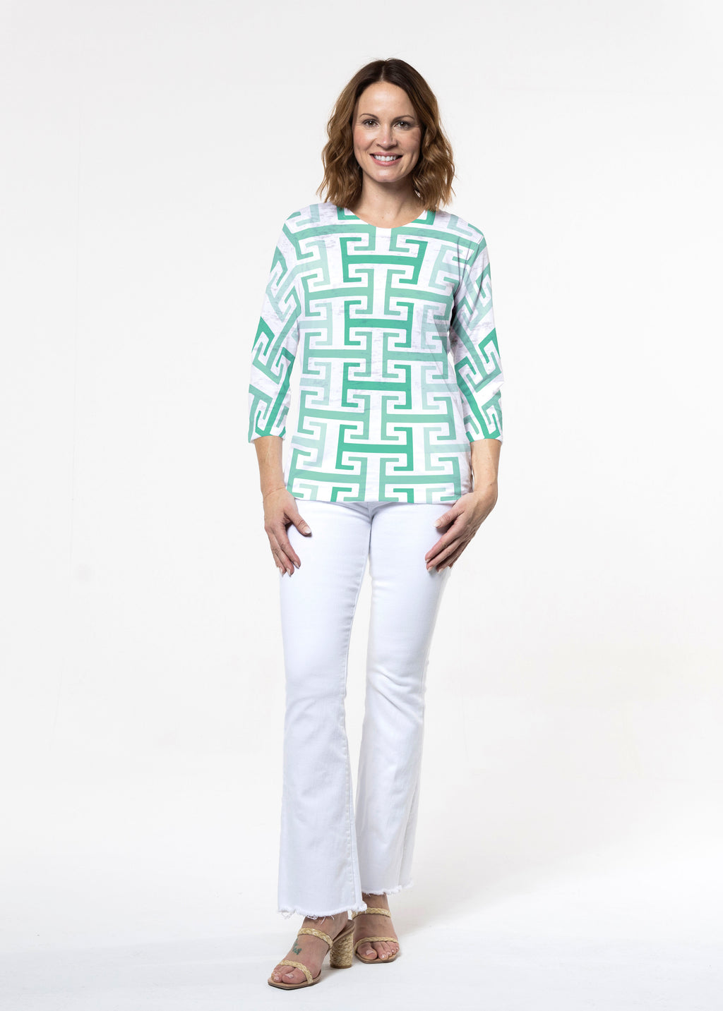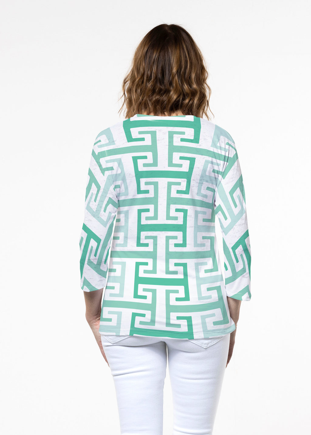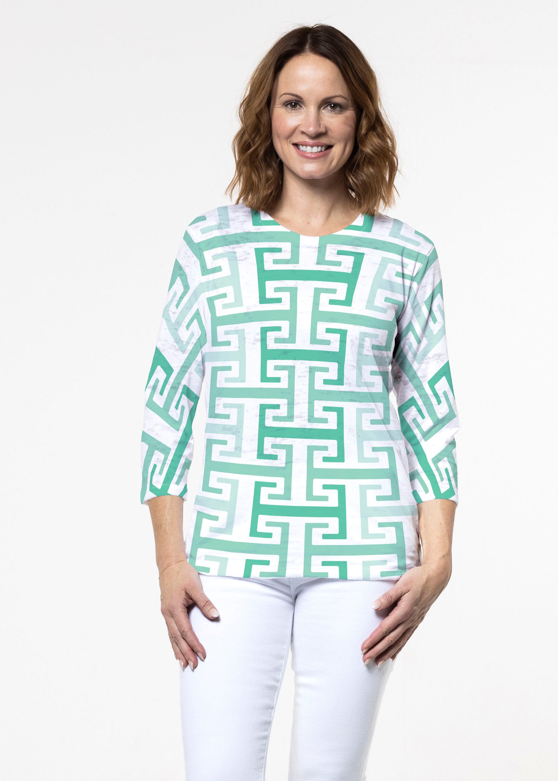 • Greek Key Mint (8193) ~ Signature 3/4 Sleeve Crew Neck Top