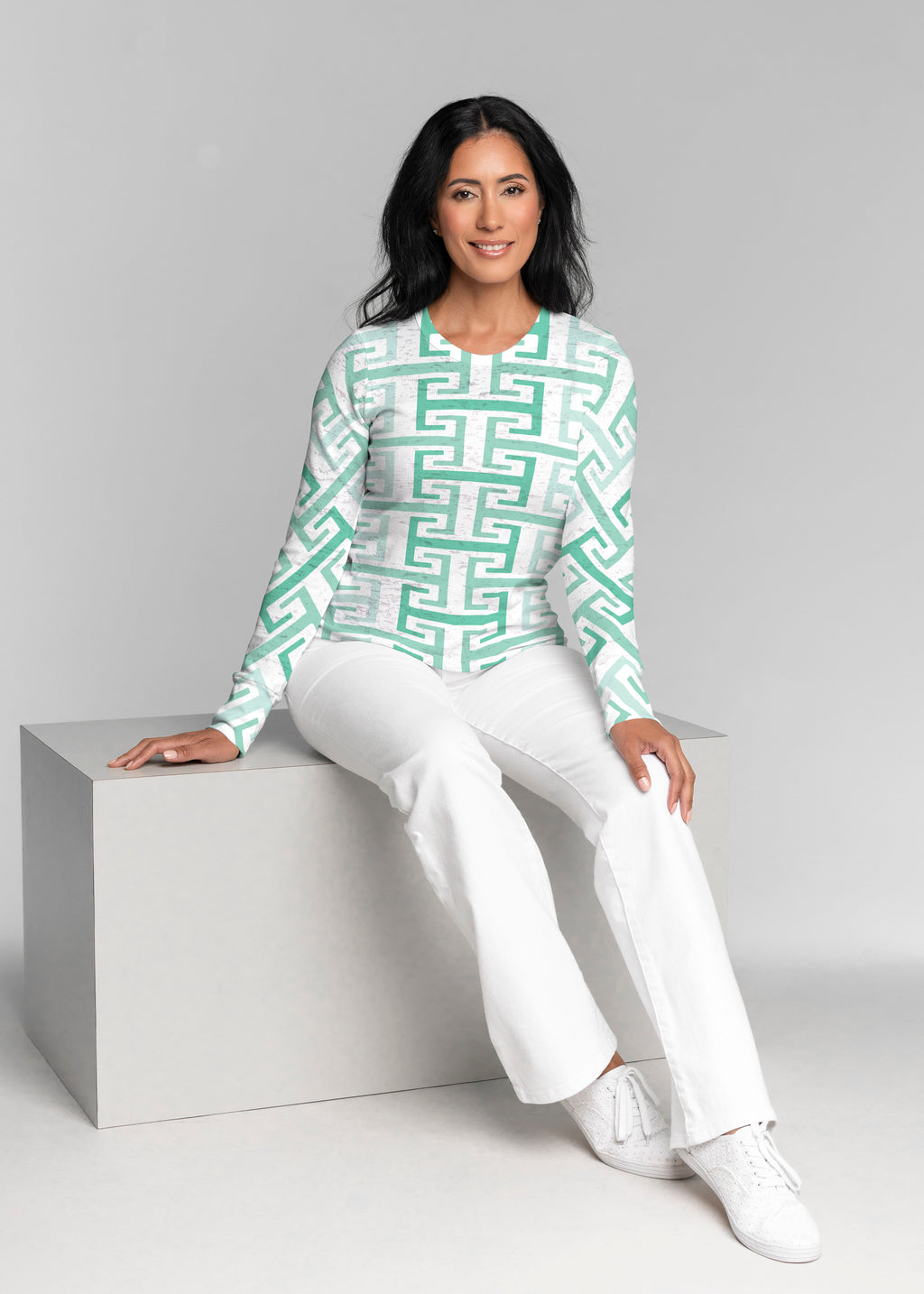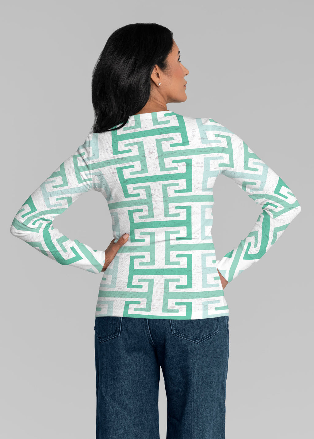 Greek Key Mint (8193) ~ Butterknit Long Sleeve Crew Top
