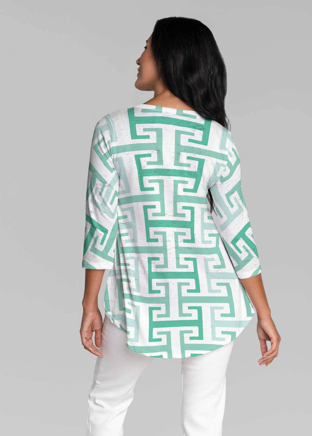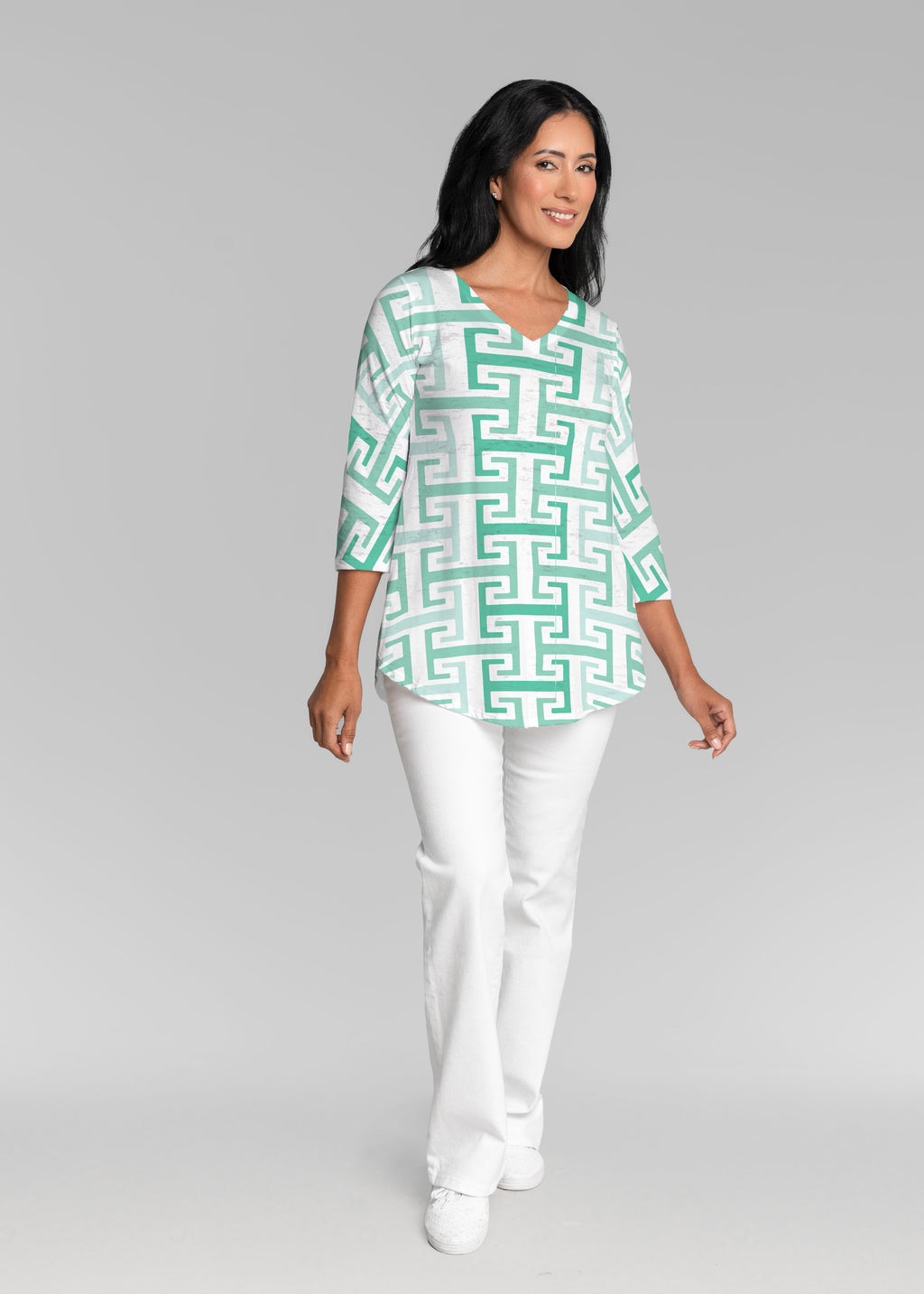 • Greek Key Mint (8193) ~ V-neck Flowy Tunic