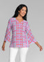 The uniquely soft, pleated texture in this Banded fabric give the 3/4 bell sleeves and sweetheart v-neck a fun and sophisticated look. Flattering side vents adorn the hemline that skims the hip.