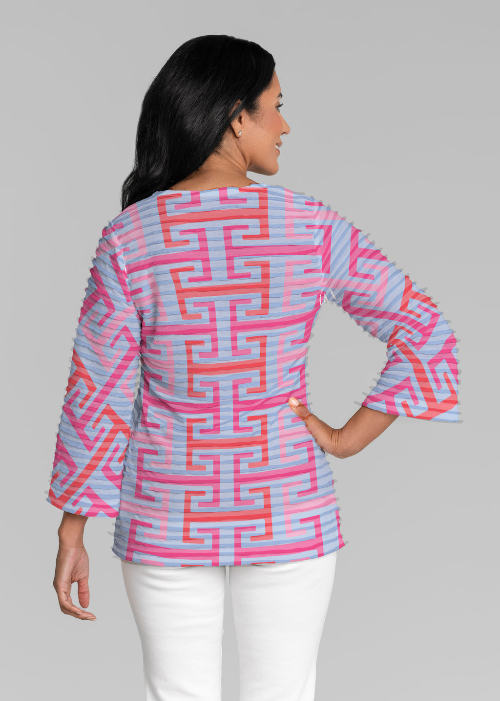 • Greek Key Summer (7414) ~ Banded 3/4 Bell-Sleeve V-Neck Tunic