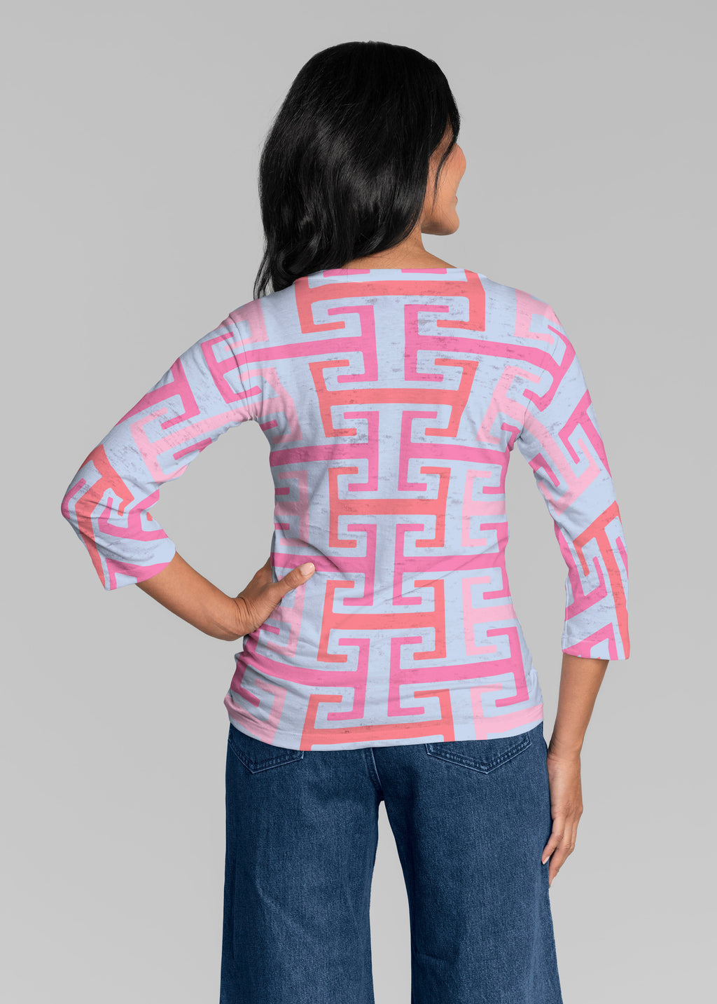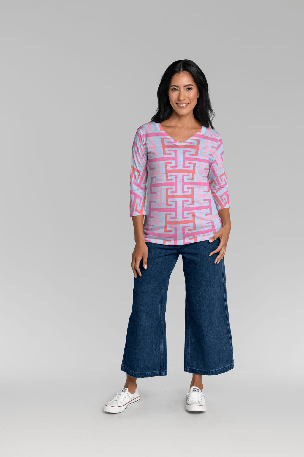 Greek Key Summer (7414) ~ Signature 3/4 Sleeve V-Neck Top