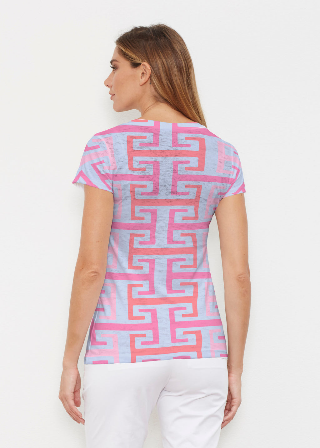 • Greek Key Summer (7414) ~ Signature Cap Sleeve V-Neck Shirt