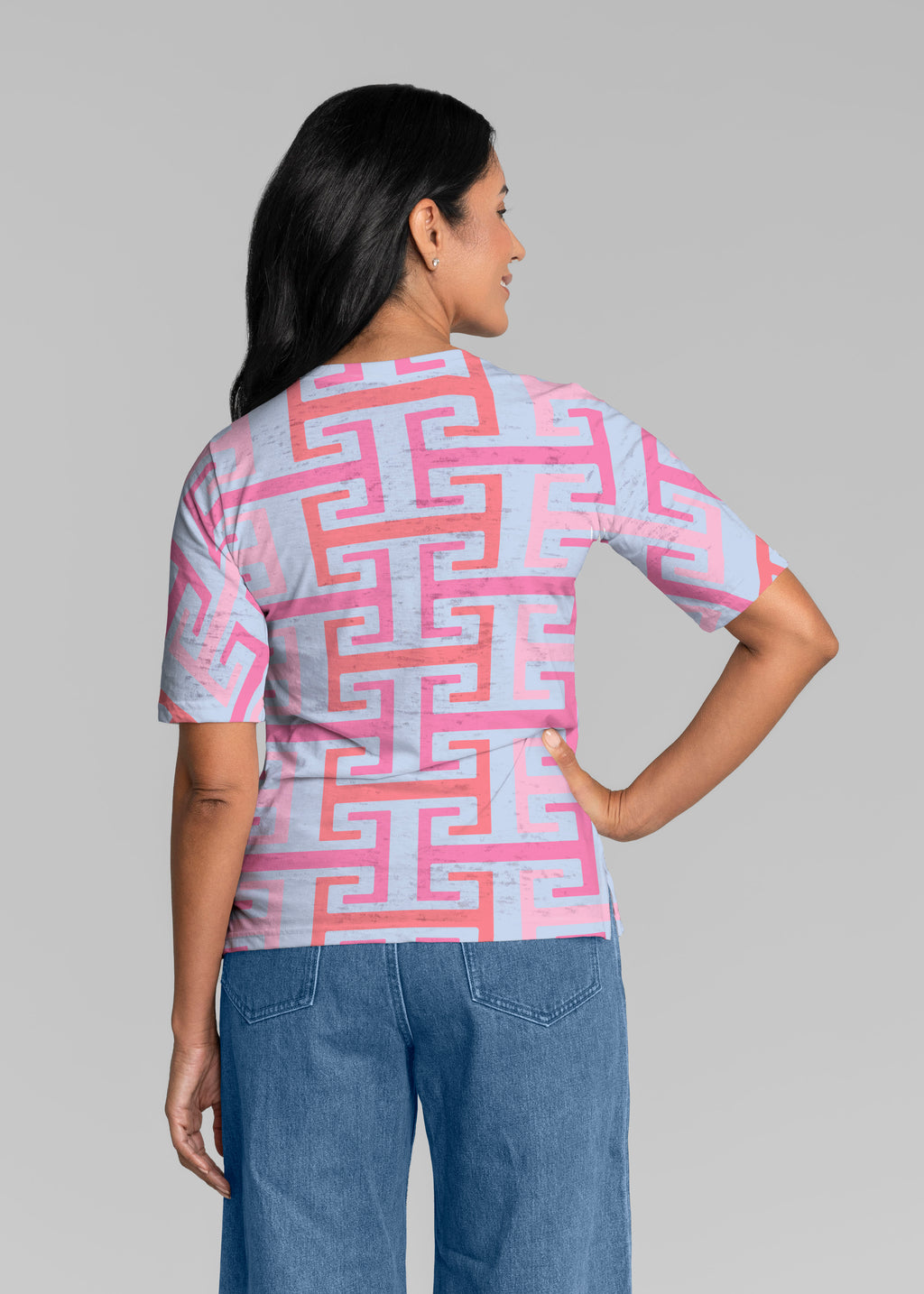 Greek Key Summer (7414) ~ Signature Elbow Sleeve V-Neck Top