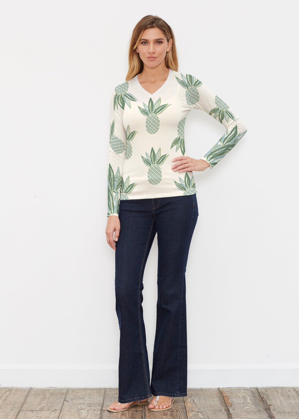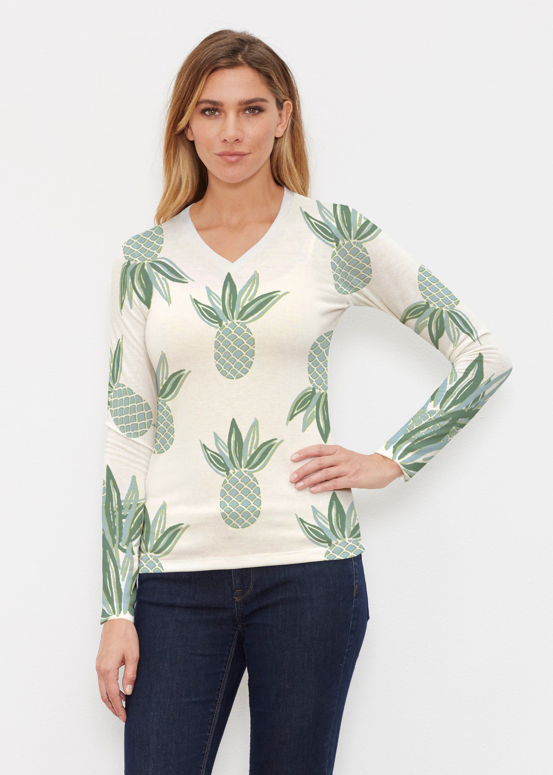 Polished and elegant, this top is a sophisticated option for chillier temps. Our soft and cozy Butterknit fabric, long sleeves, fitted shape, and v- neck make the perfect comfortable and stylish look in your favorite print.