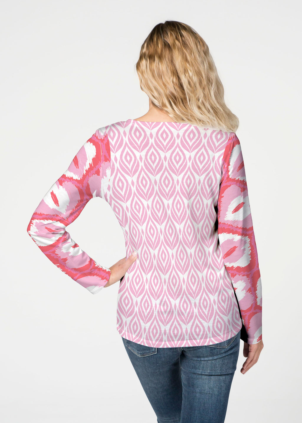 Ikat Buds Red/Pink (8096) ~ French Terry V-neck Top