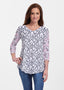 This v-neck tunic in our Signature burnout fabric is forever flattering. 3/4 sleeves and a v-neck flow into a full, swinging shirttail hem.