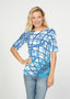 Infinite Blue (5273) ~ Banded Elbow Sleeve Boat Neck Top