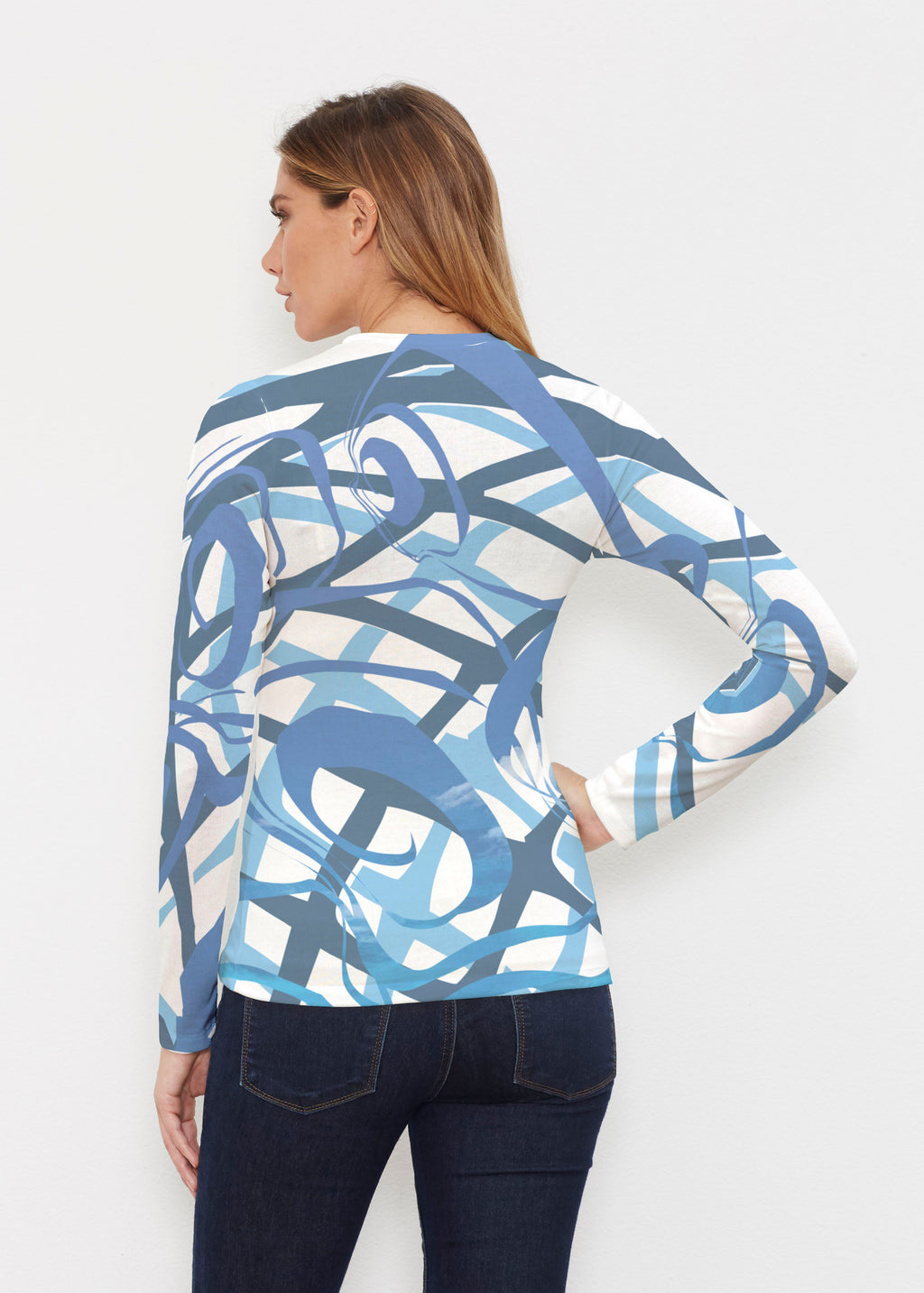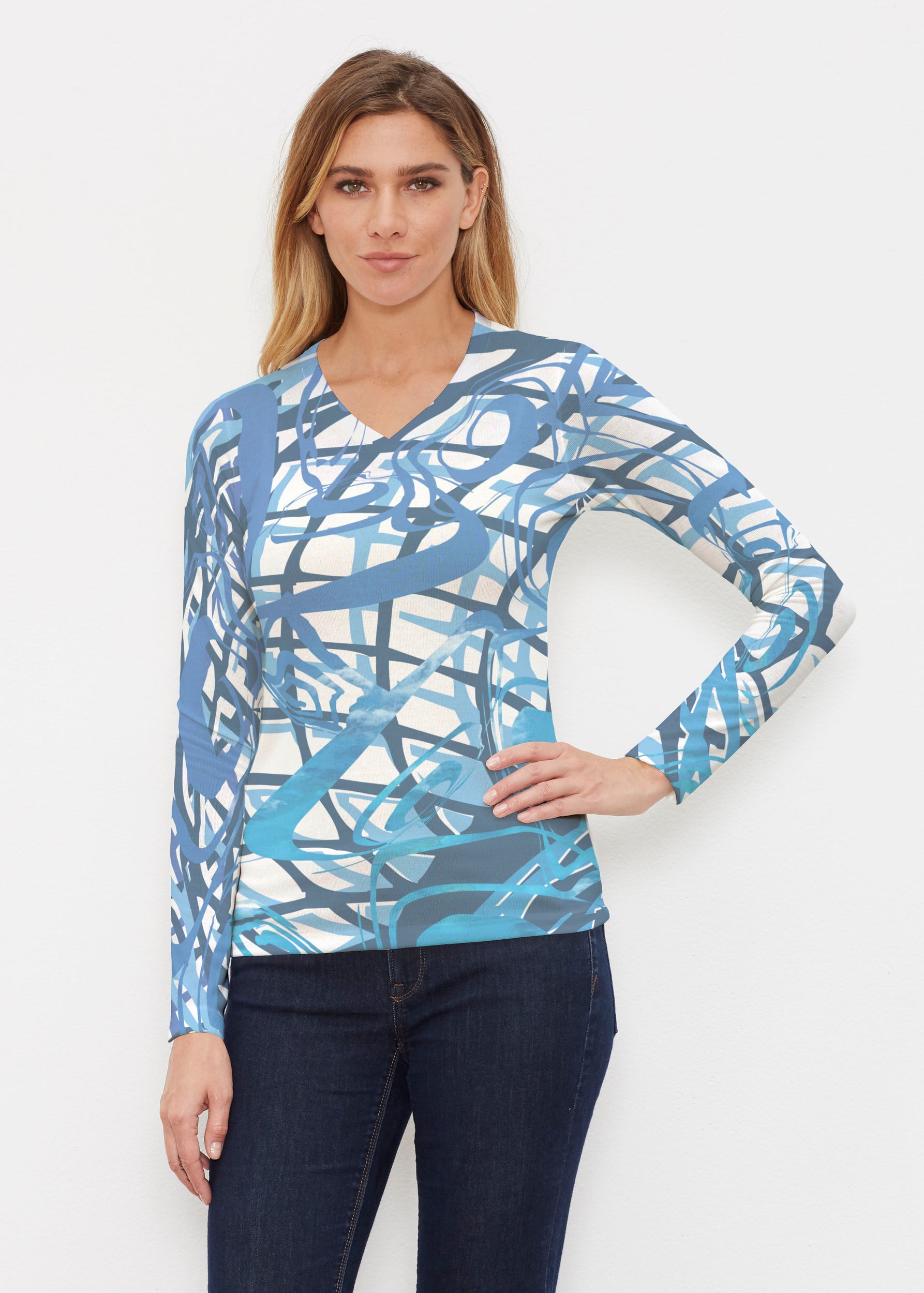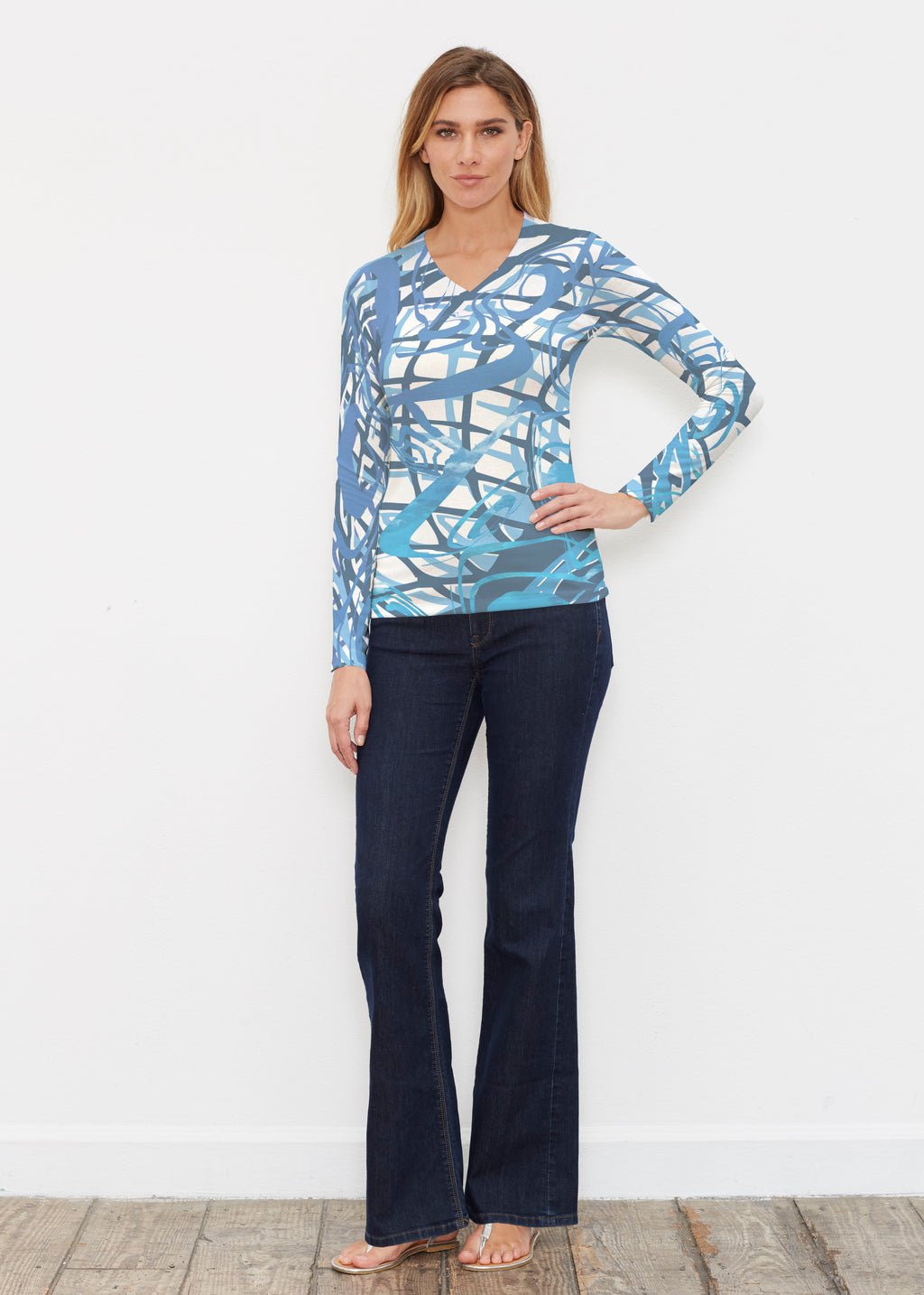 Jungle Warrior Blue (7850) ~ Butterknit Long Sleeve V-Neck Top