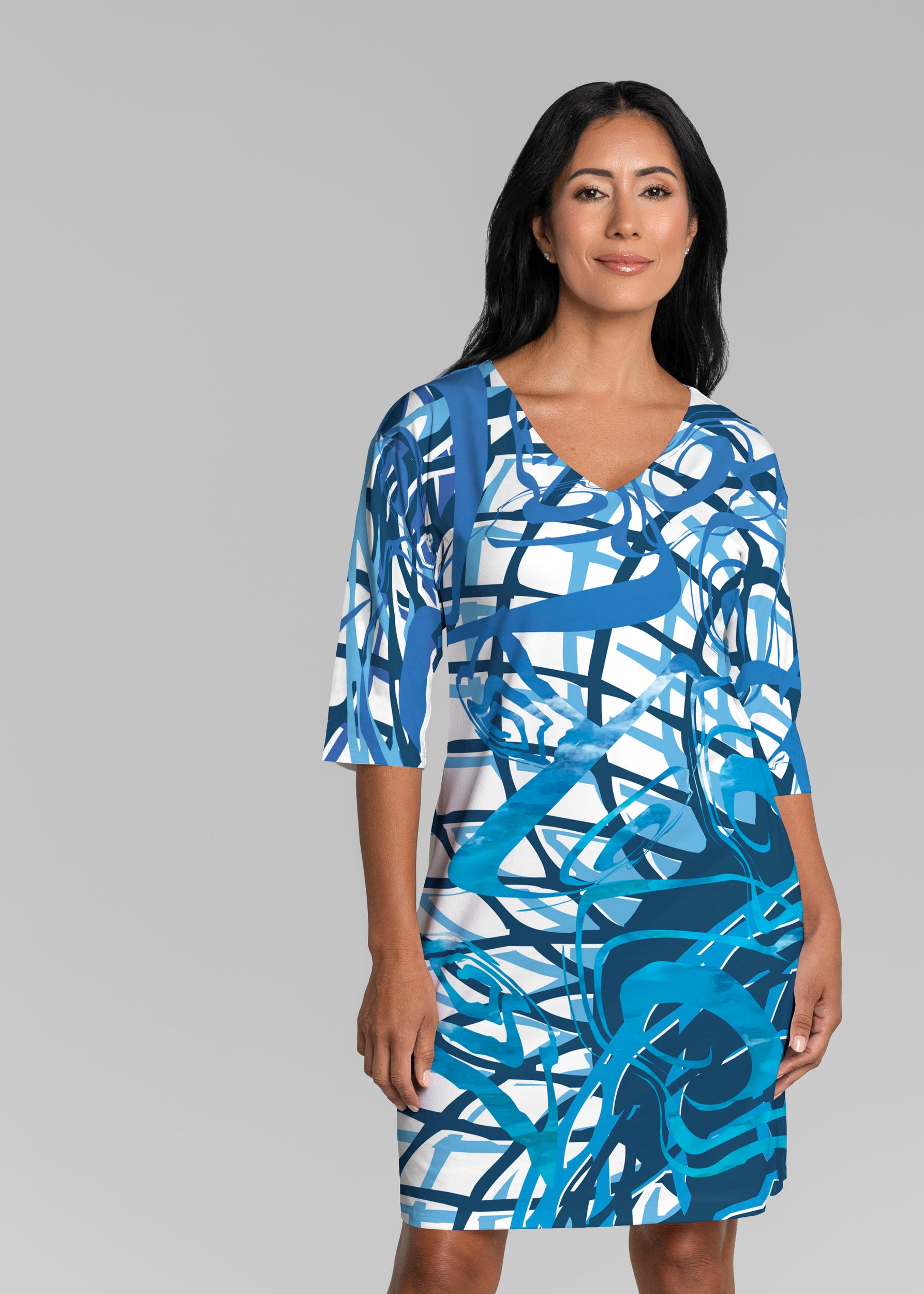 Infinite Blue (5273) ~ Lucy 3/4 Sleeve V-Neck Dress