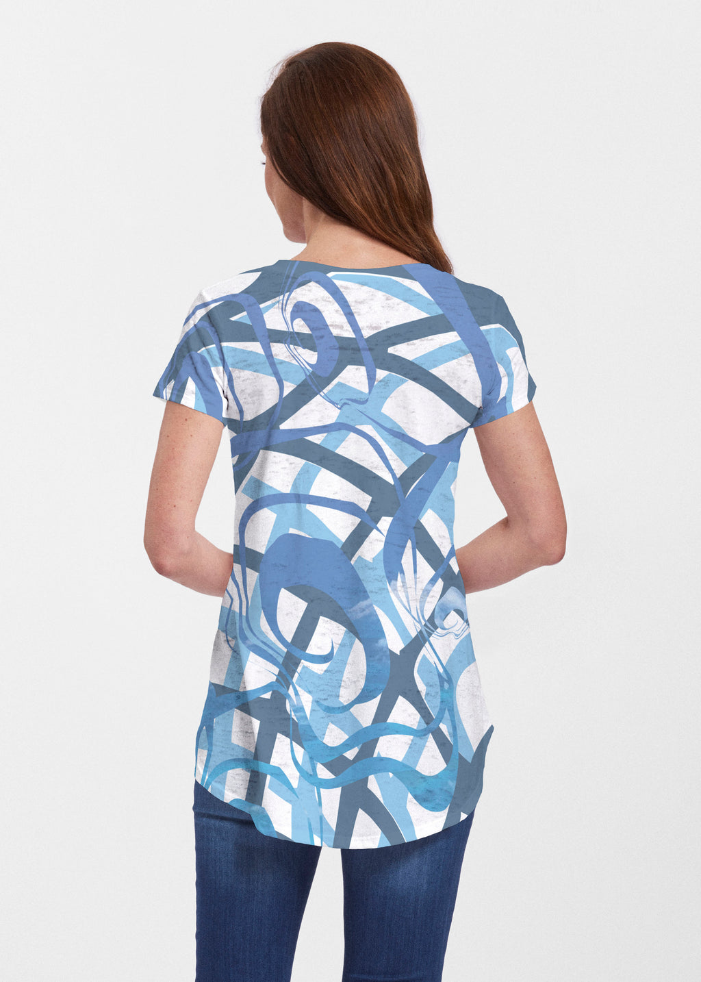 Aqua Citrus (7855) ~ Signature Short Sleeve Scoop Neck Flowy Tunic