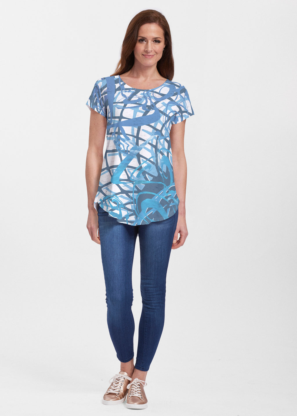 An effortlessly flattering tunic in our soft Signature burnout fabric featuring short sleeves and a scoop neck with a body that flows into a full, swinging shirttail hem.