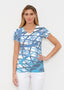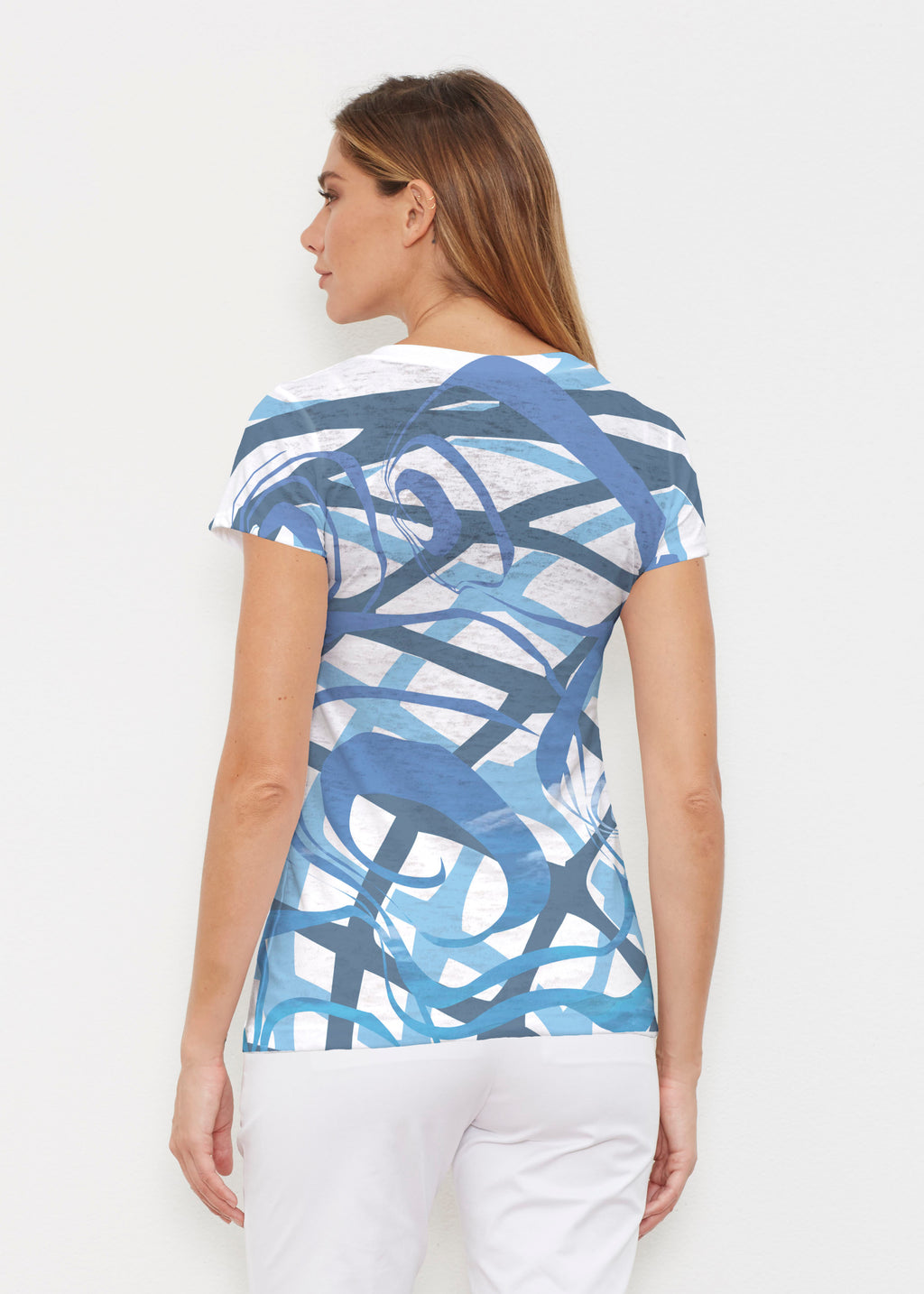 Created in soft, casual burn-out Signature blend, this tee features a subtle v-neck and cap sleeves. -- Your one-of-a-kind garment is created using all-over soft garment sublimation printing. Selected designs are individually printed into your garment. Cotton/Polyester blend.