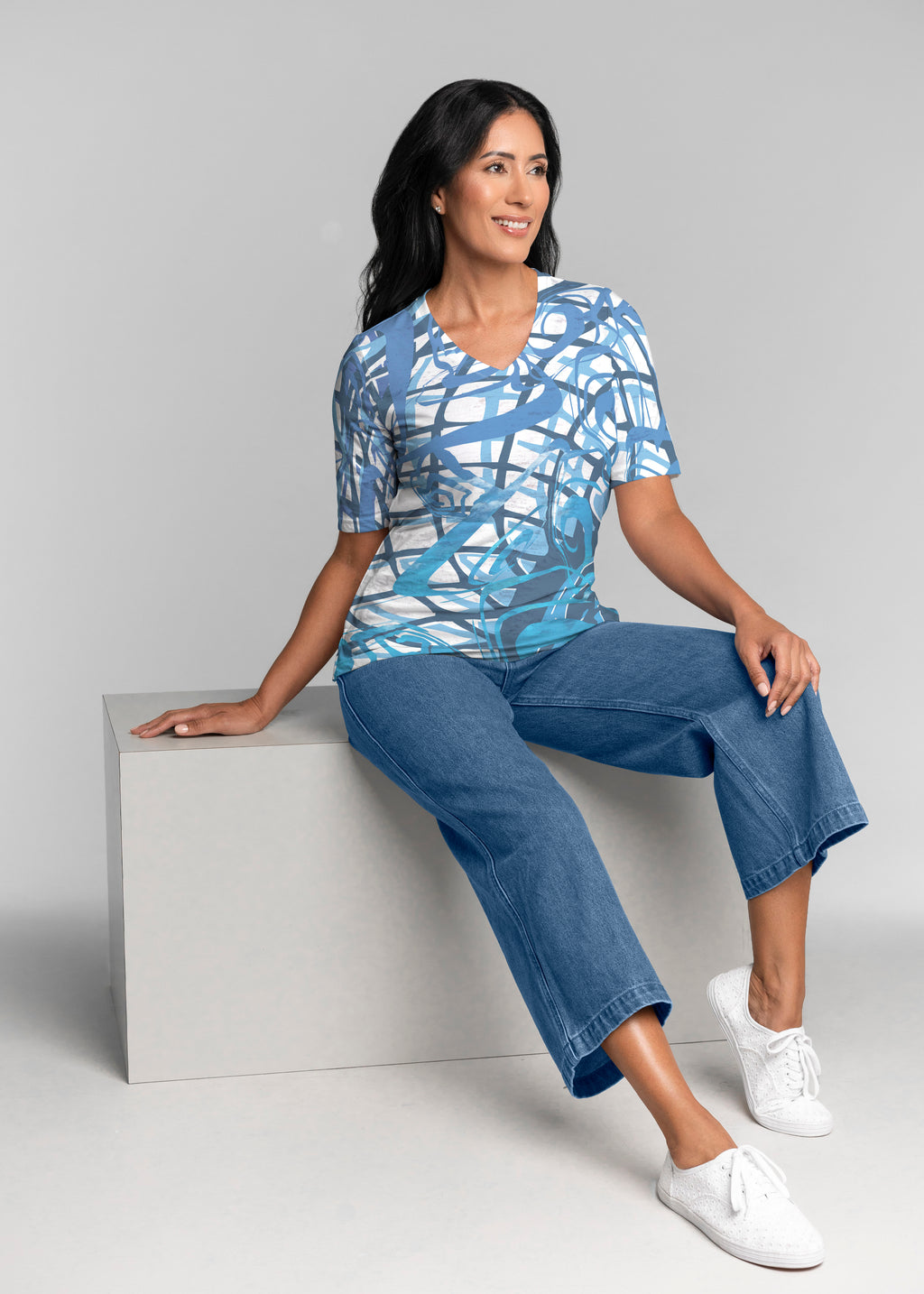 Infinite Blue (5273) ~ Signature Elbow Sleeve V-Neck Top