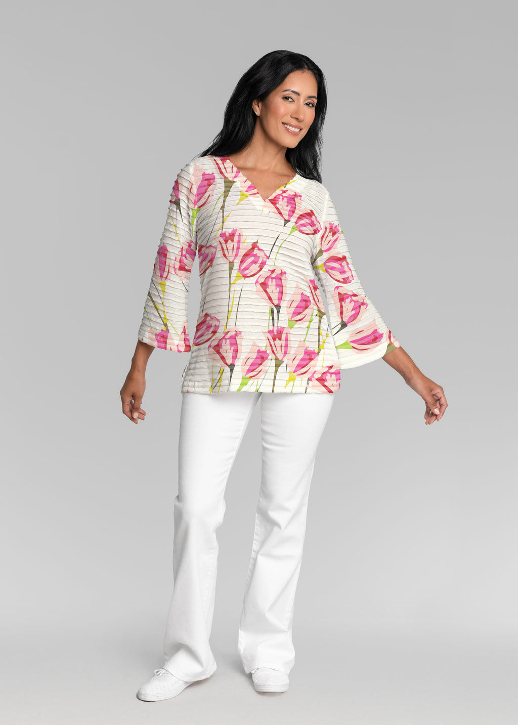 Surfin Safari (26034) ~ Banded 3/4 Bell-Sleeve V-Neck Tunic