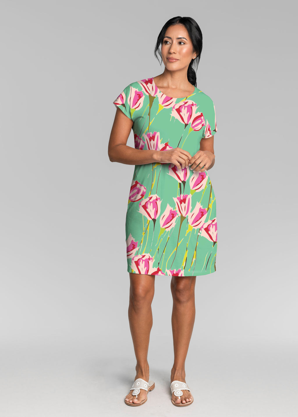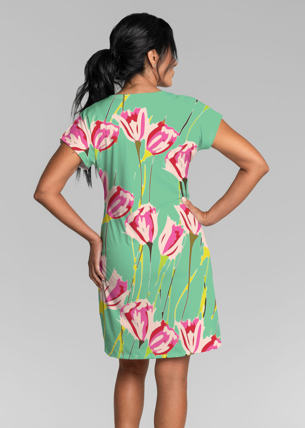 Our Lucy Tee Dress is effortless, versatile and soft to the touch -- perfect for all day style and comfort. A soft crew neckline, seamless sleeve and a relaxed shape made in our vibrant Lucy fabric ends above the knee.