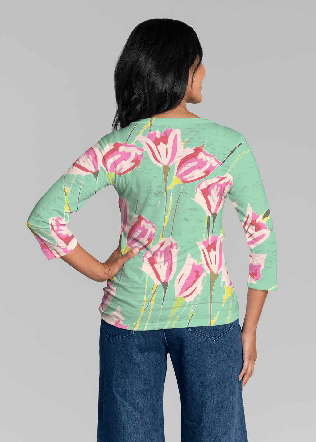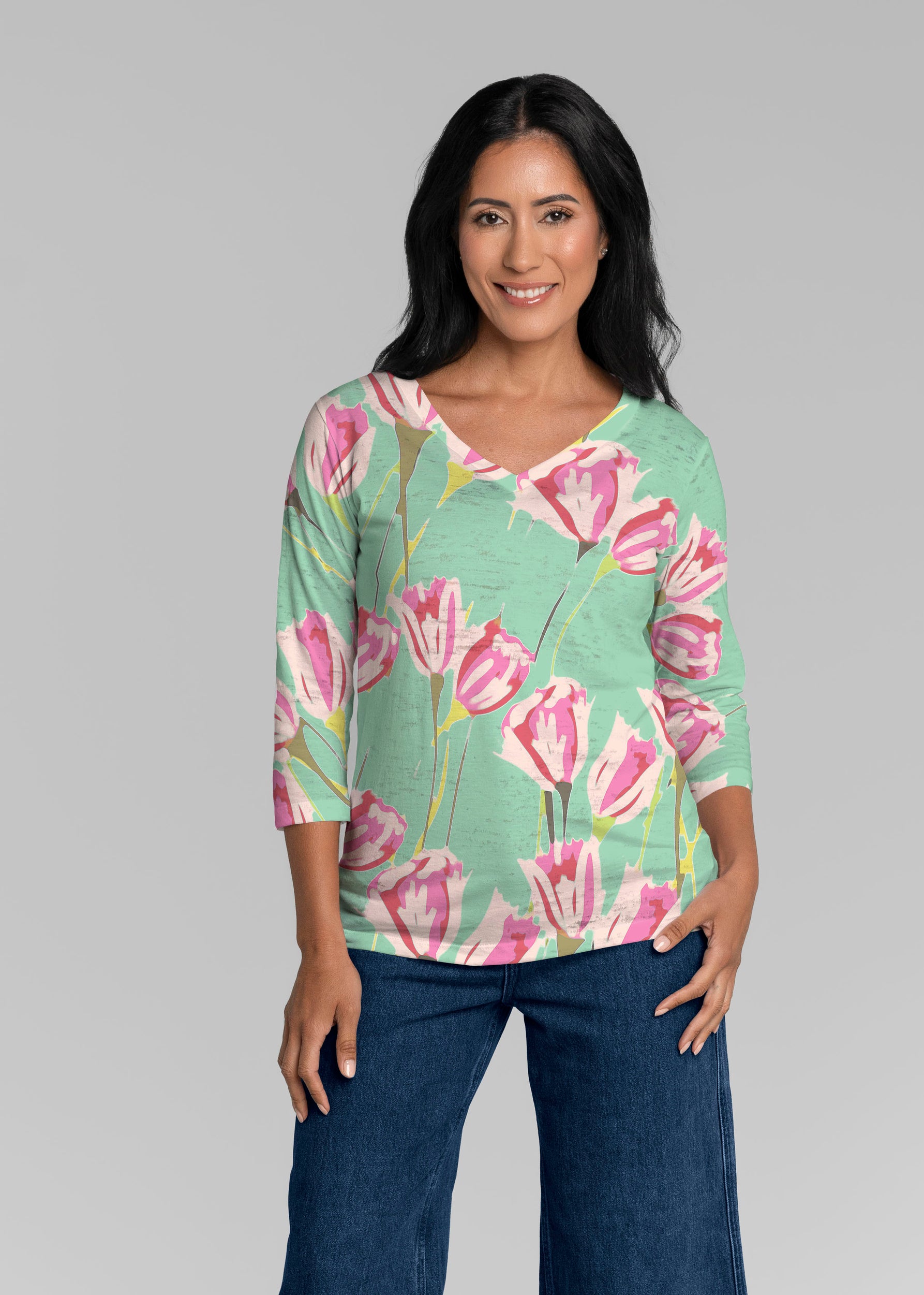 Our casual Signature 3/4 sleeve has a subtle v-neck and is perfectly proportioned and a new best-selling favorite. This relaxed fit is not only flattering but you get to pick that special print for any mood.
