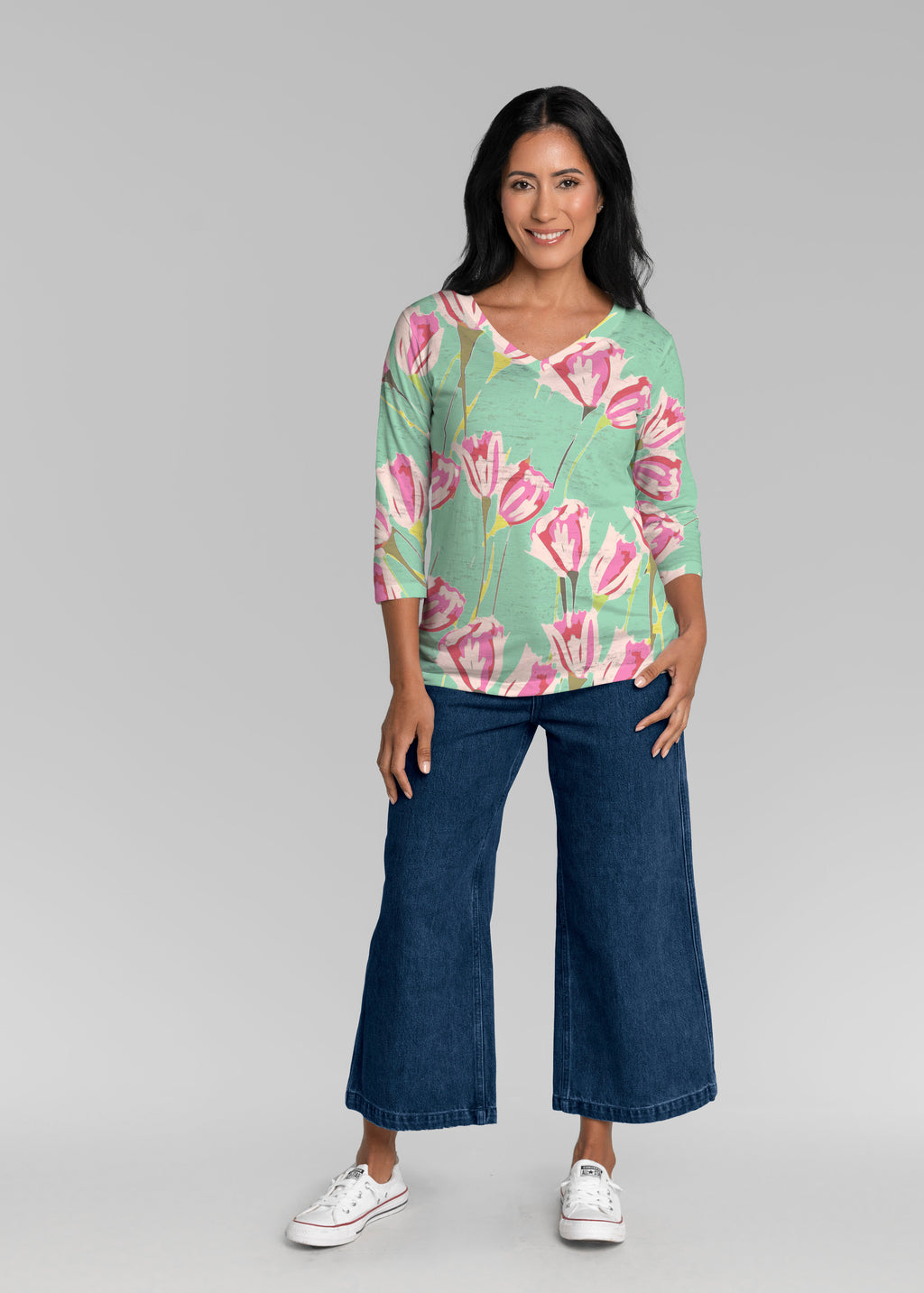 La La Mint (8202) ~ Signature 3/4 Sleeve V-Neck Top