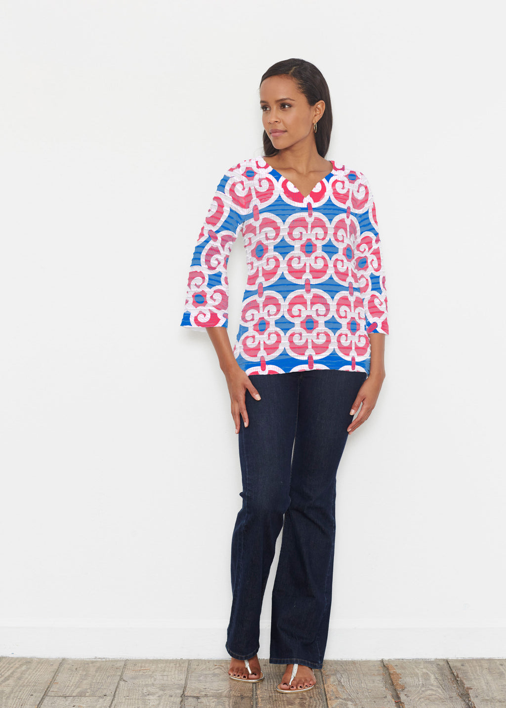 Bali Batik (26003) ~ Banded 3/4 Bell-Sleeve V-Neck Tunic